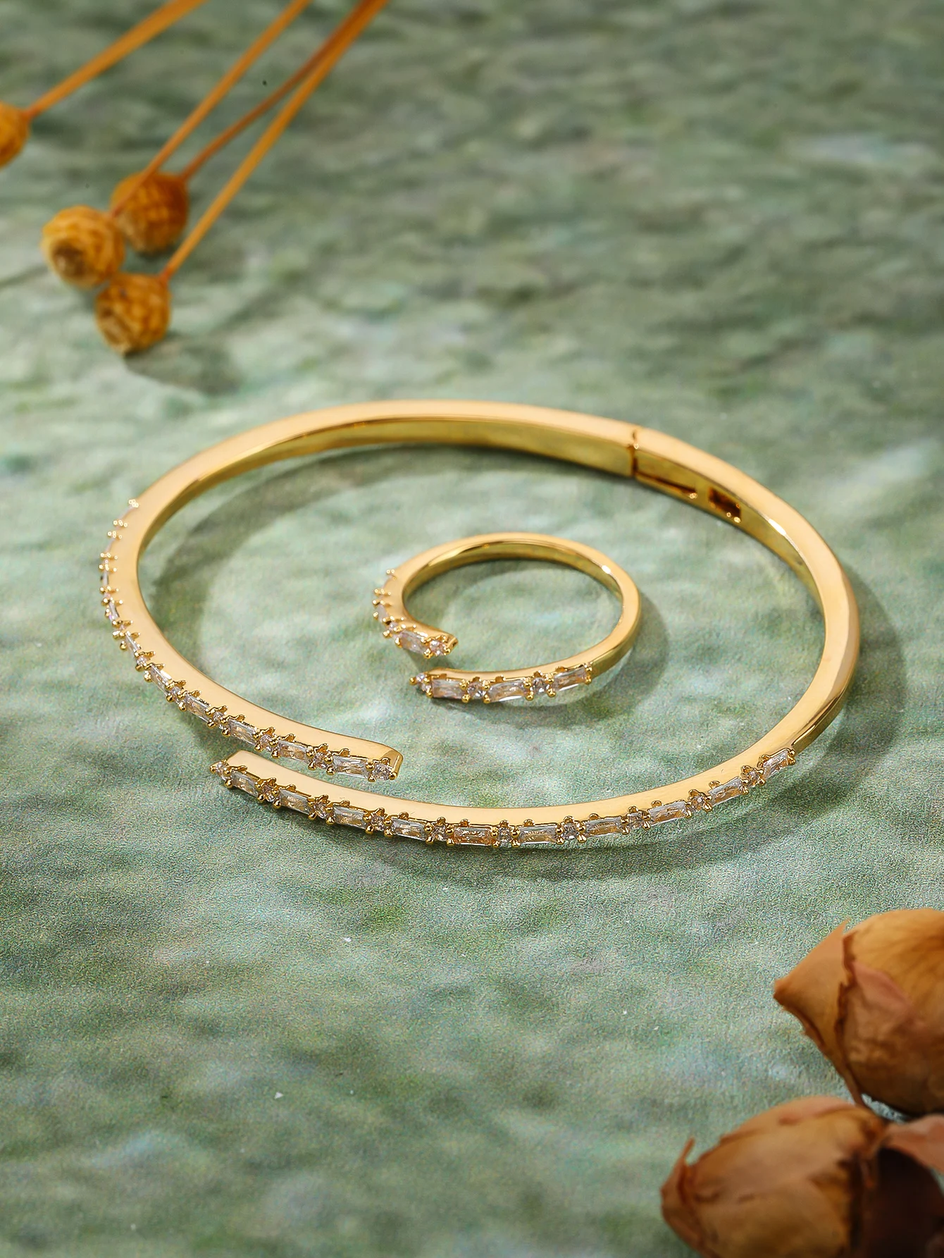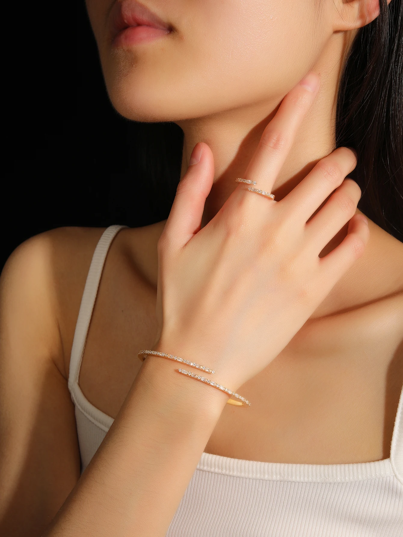 Anniversary Wedding Engagement Party Jewelry Set Designer Pattern Rhodium Plated Zircon Bracelet & Ring Suite