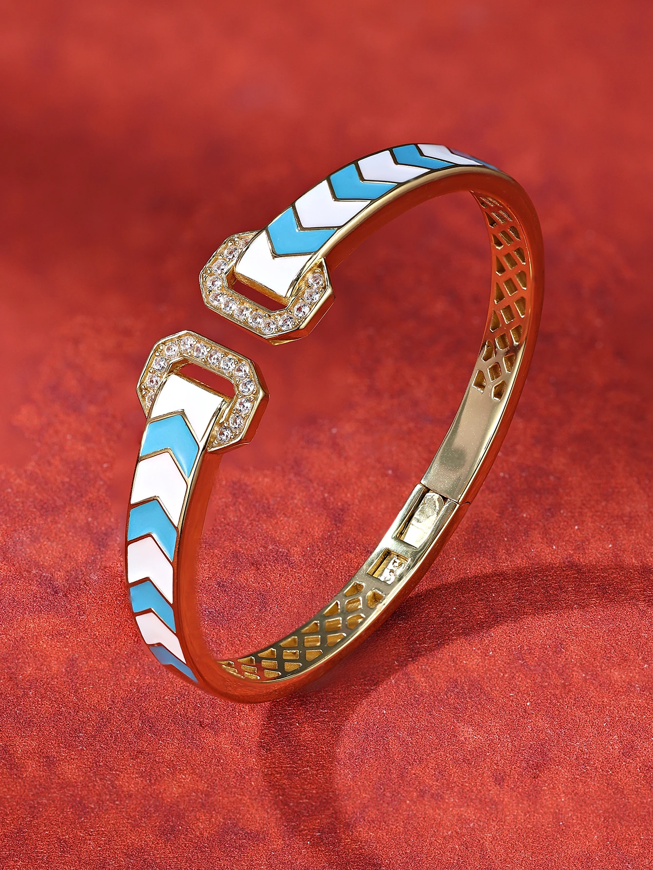 Bridetalk S925 Sterling Silver Gold Plated Zircon Vintage Bangles Women Classic Dainty Jewelry Gift Made Guangdong Wedding