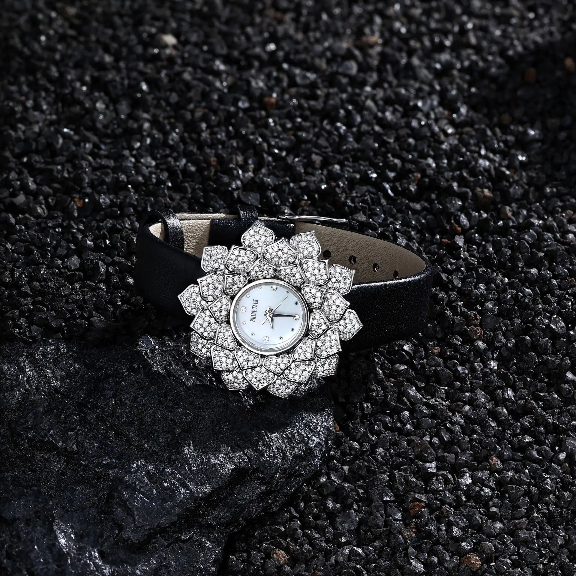 Luxury Analog Quartz Watch Flowers Unique Original Design Cross-Border Explosion Brass Case Stainless Steel Band