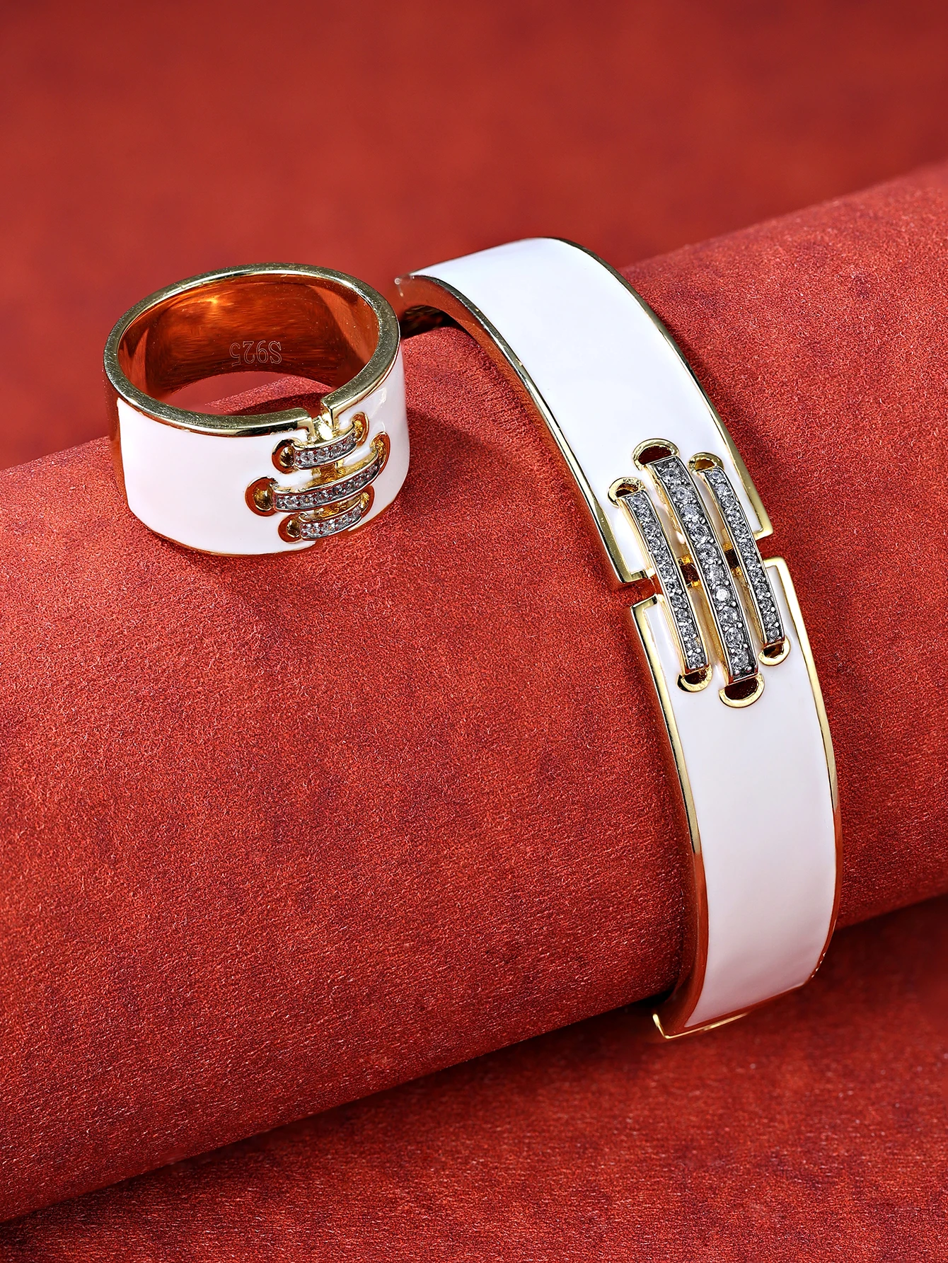 Trendy Geometric 925 Sterling Silver Zircon Jewelry Set Rhodium Plated Resin Earrings & Necklace Wedding Party Gift Occasion
