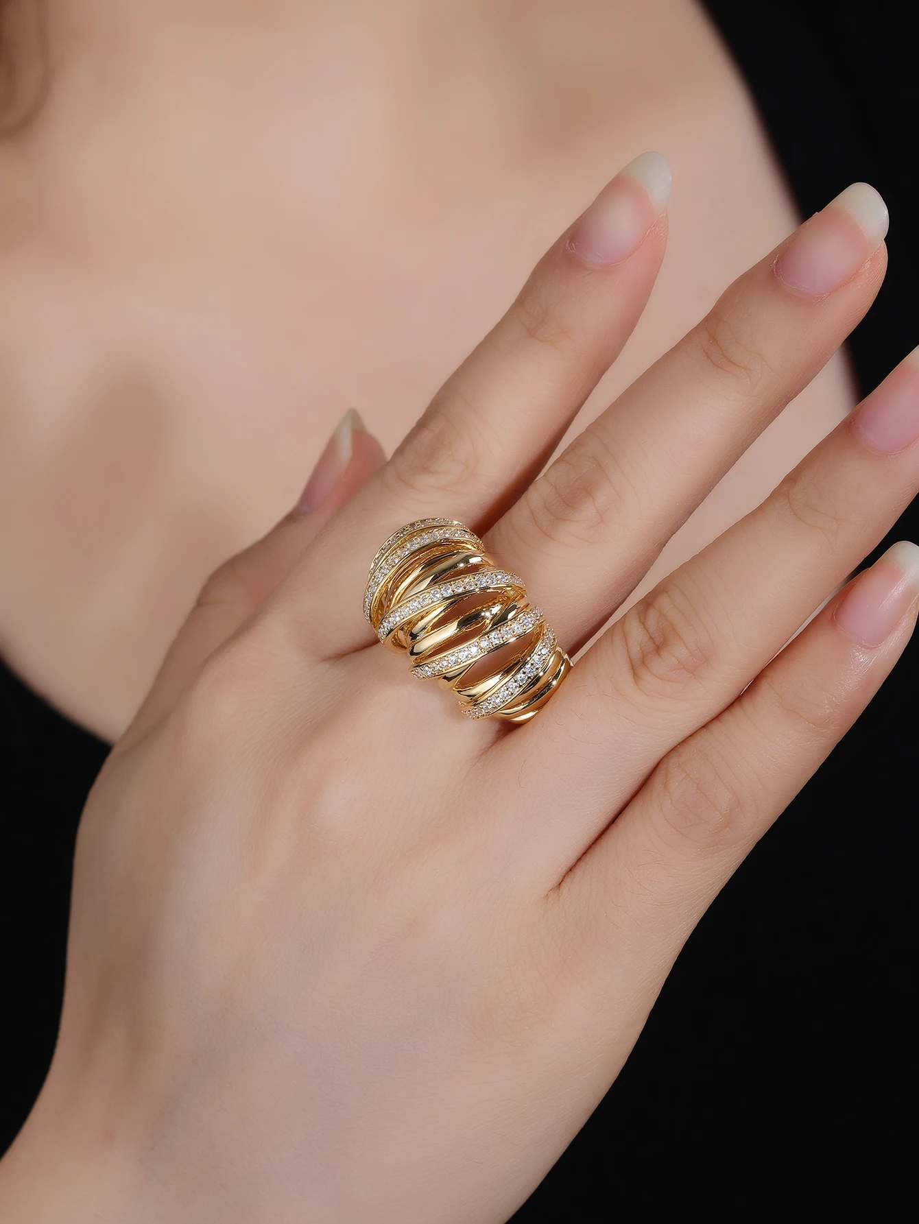 TOKE Classic Women's Engagement Wedding Gift Ring Brass Sparkling Zircon Gemstone Inlay Micro Insert Daily Wear