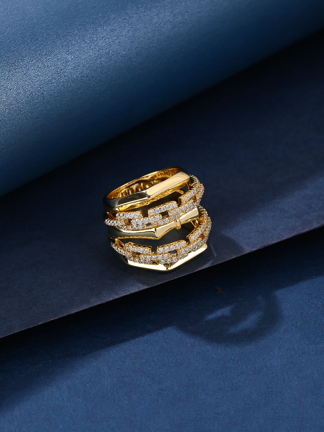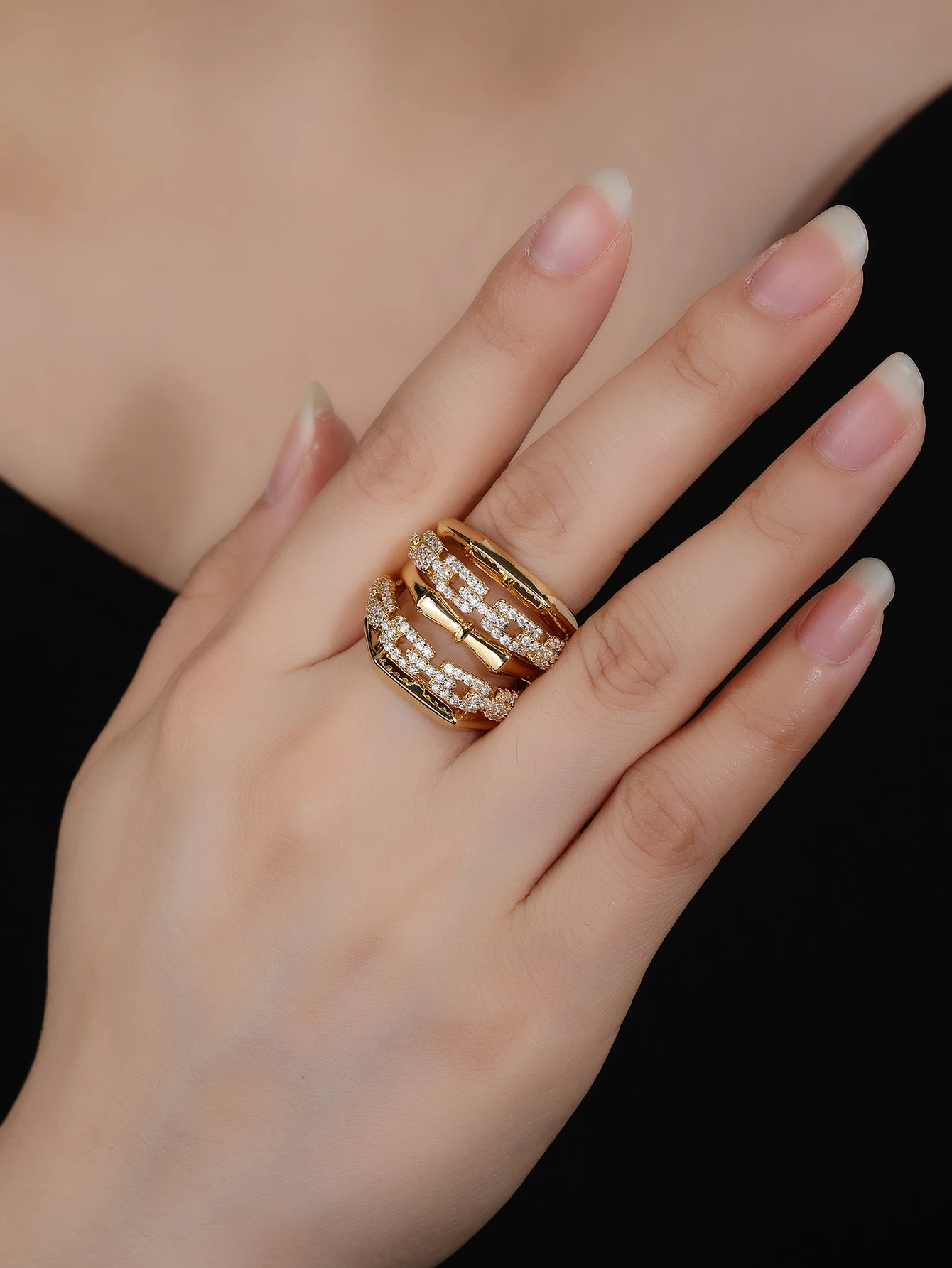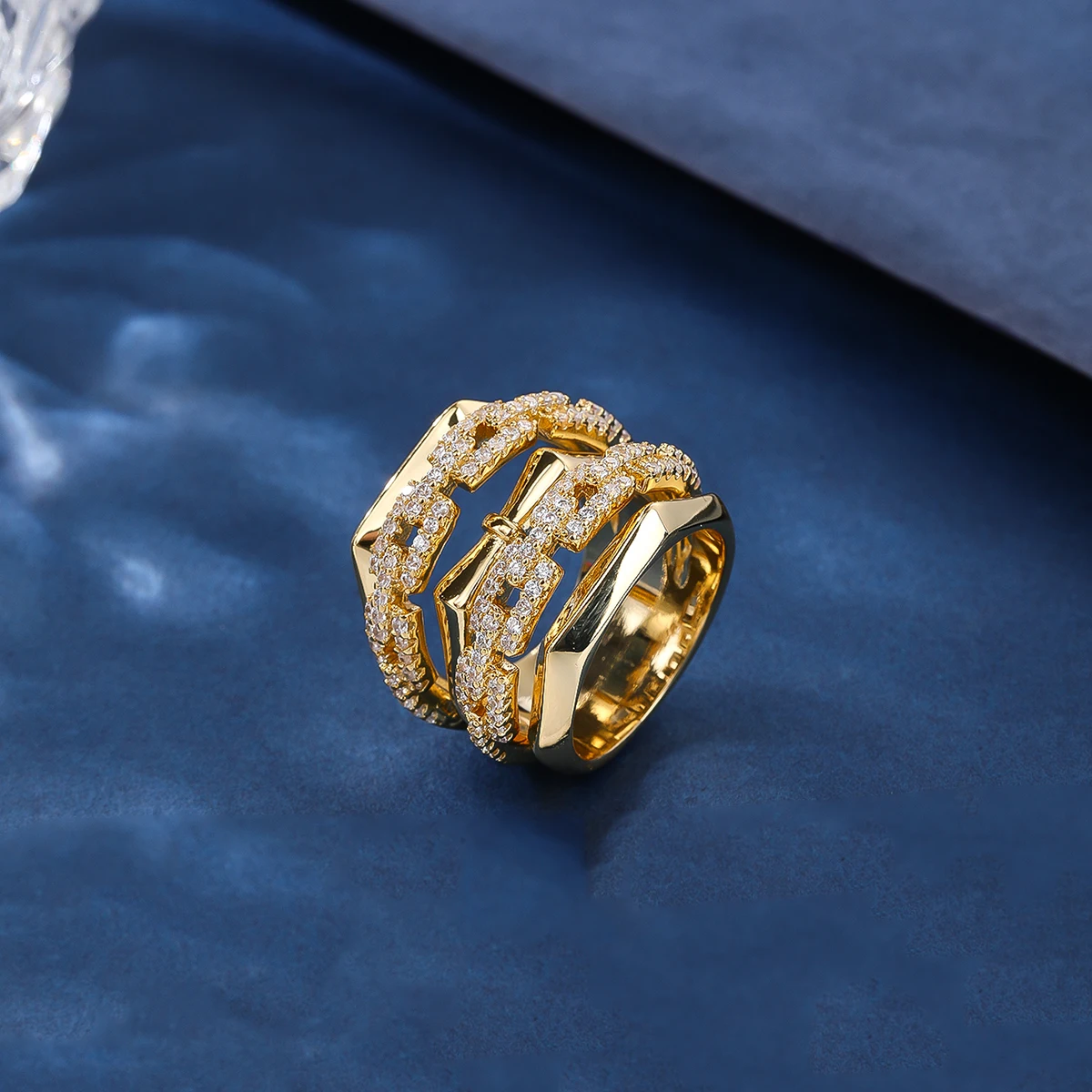 Women's Fashion Wedding Engagement Ring Set Zircon Gold Plated Classic Resizable Band Gift Jewelry