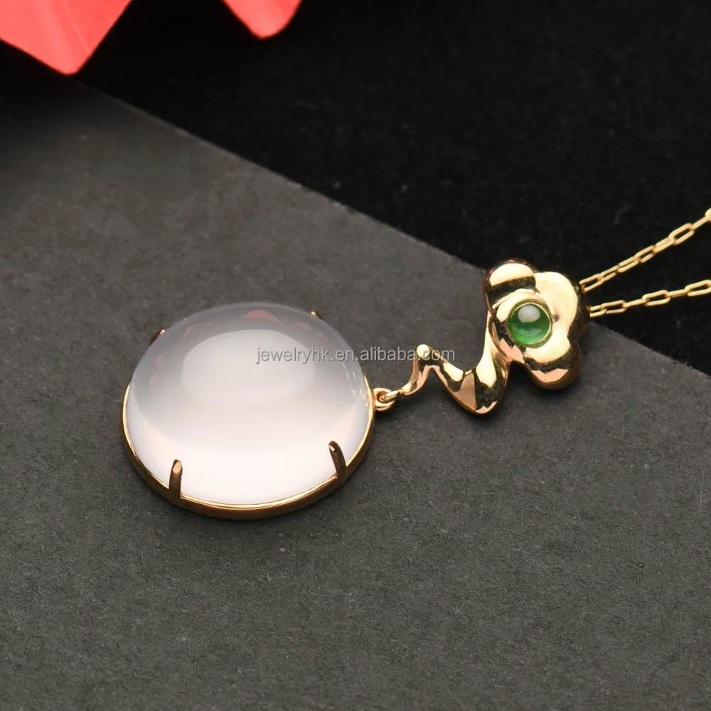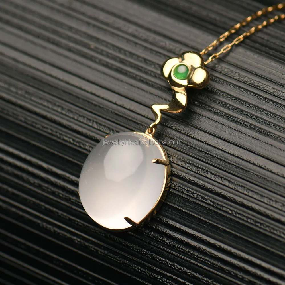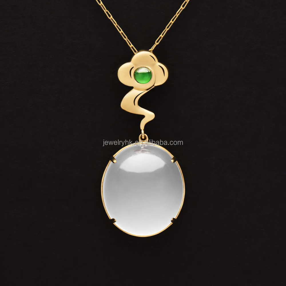 qingyabailu Trifolium exquisite ice-grade jadeite feicui natural crystal gold pendant necklace