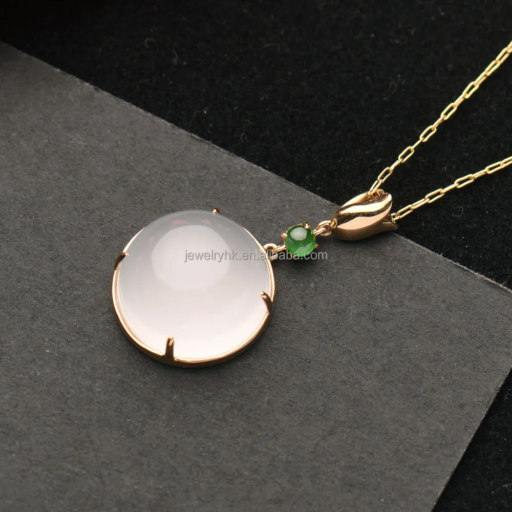 qingyabailu feicui Simple oval 18K gold natural crystal pendant jewelry 5A high-end pendant necklace