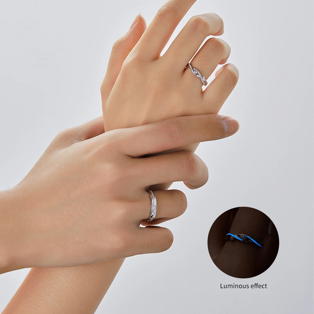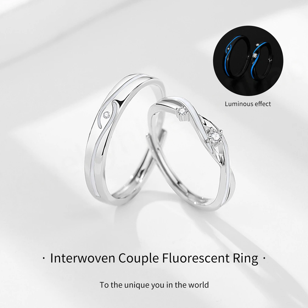 High-Grade S925 Sterling Silver GRS Certified Open Ring Ferris Wheel Interwoven Couple Fluorescent Design Elegant Wedding Party