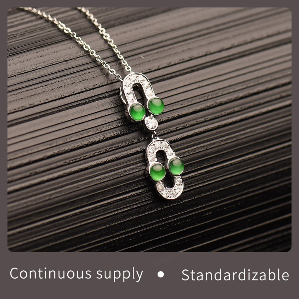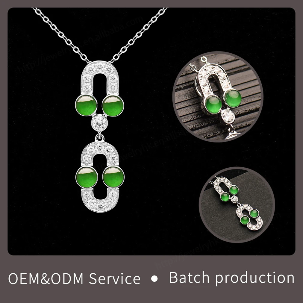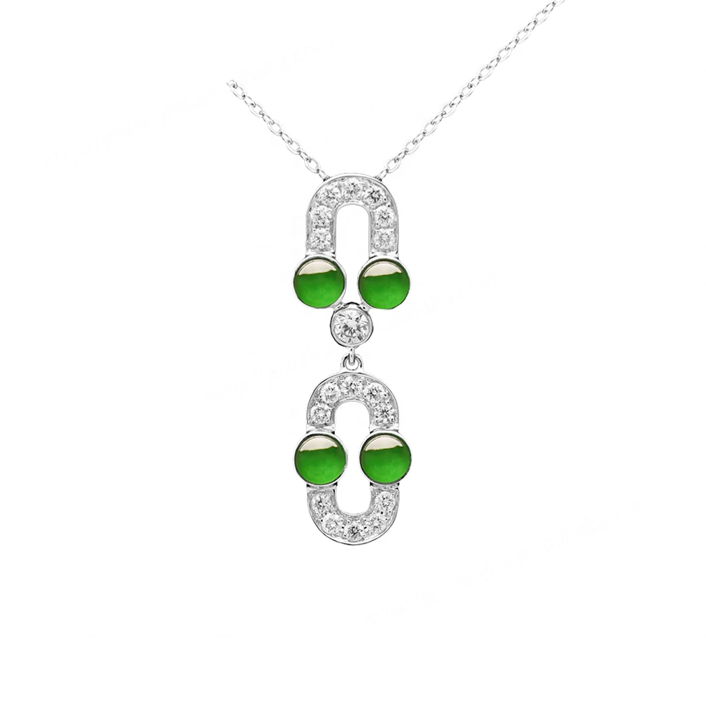 Forever Star 18K White Gold Transparent Icy Pure Green Jadeite Flower Shape Claw Setting Classic Style Jewelry Pendant Charms