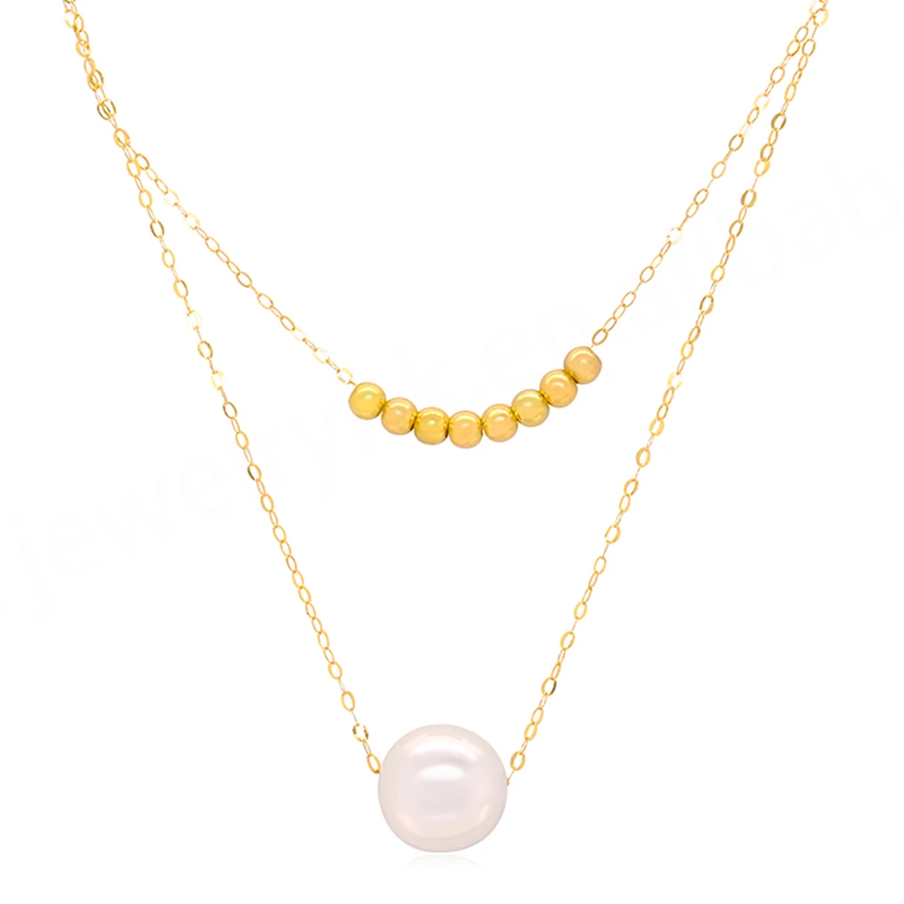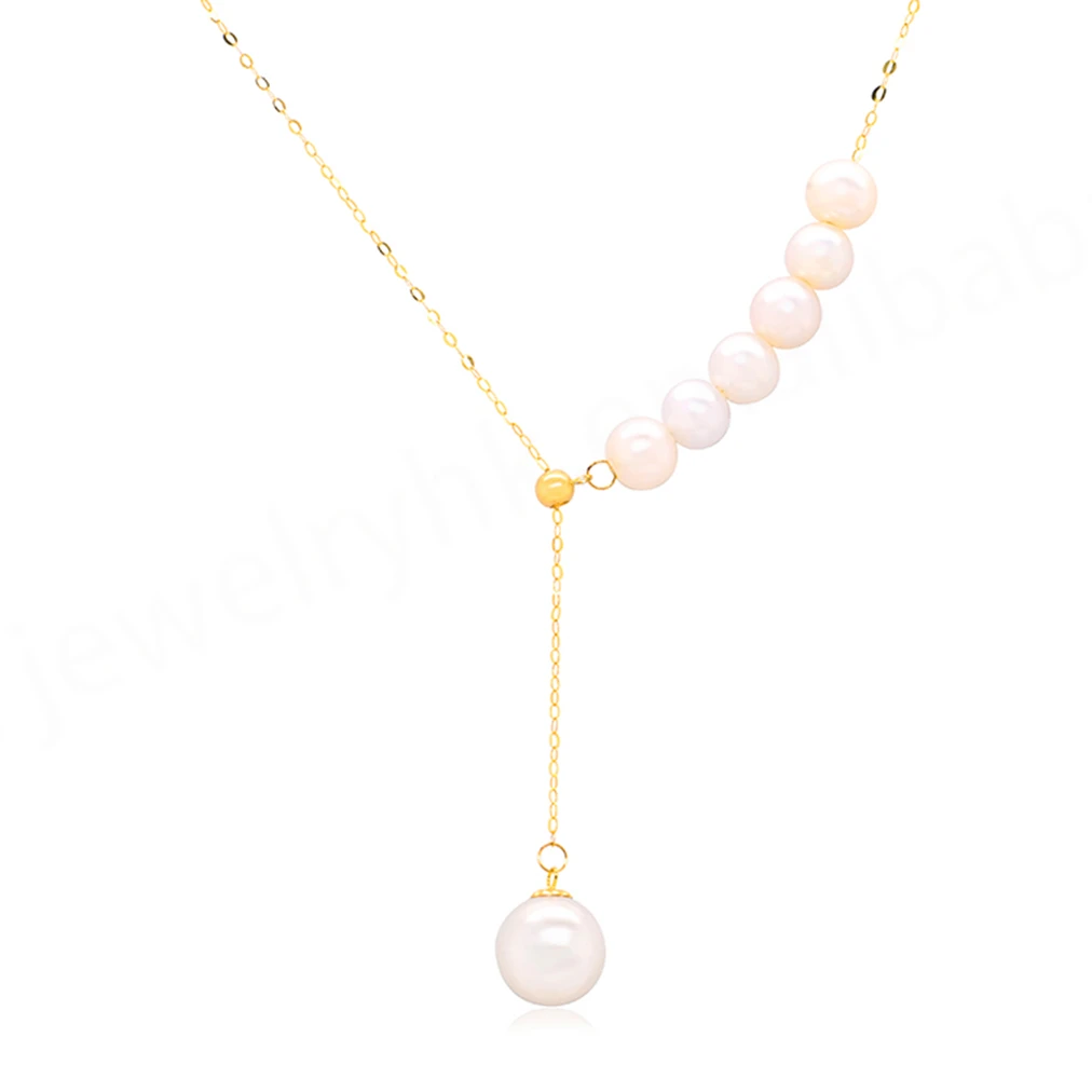 18K Gold Women's Cute NGTC Certified Charm Necklace with Freshwater Pearl Fashion Asymmetric Sexy Design