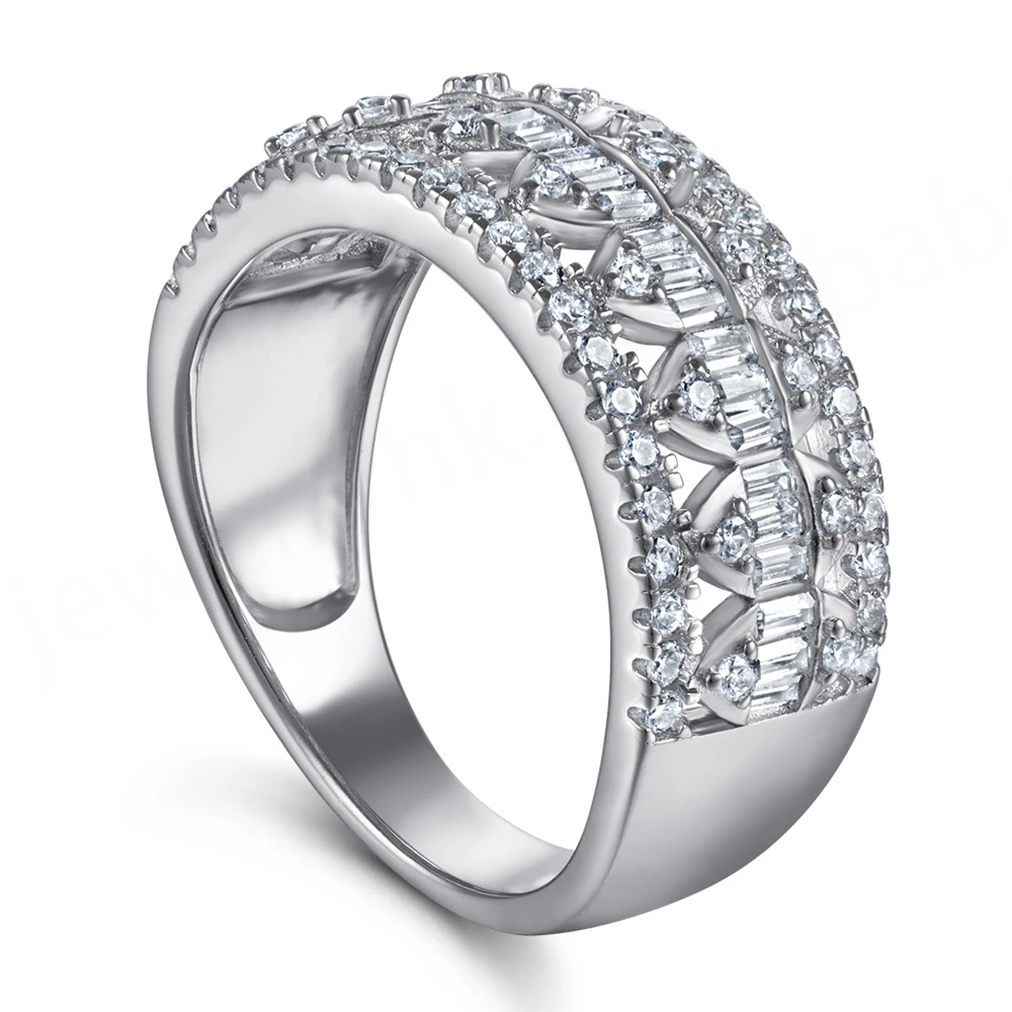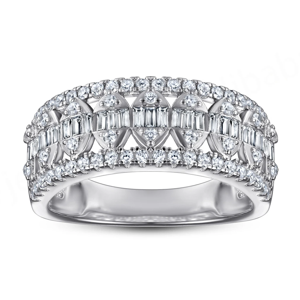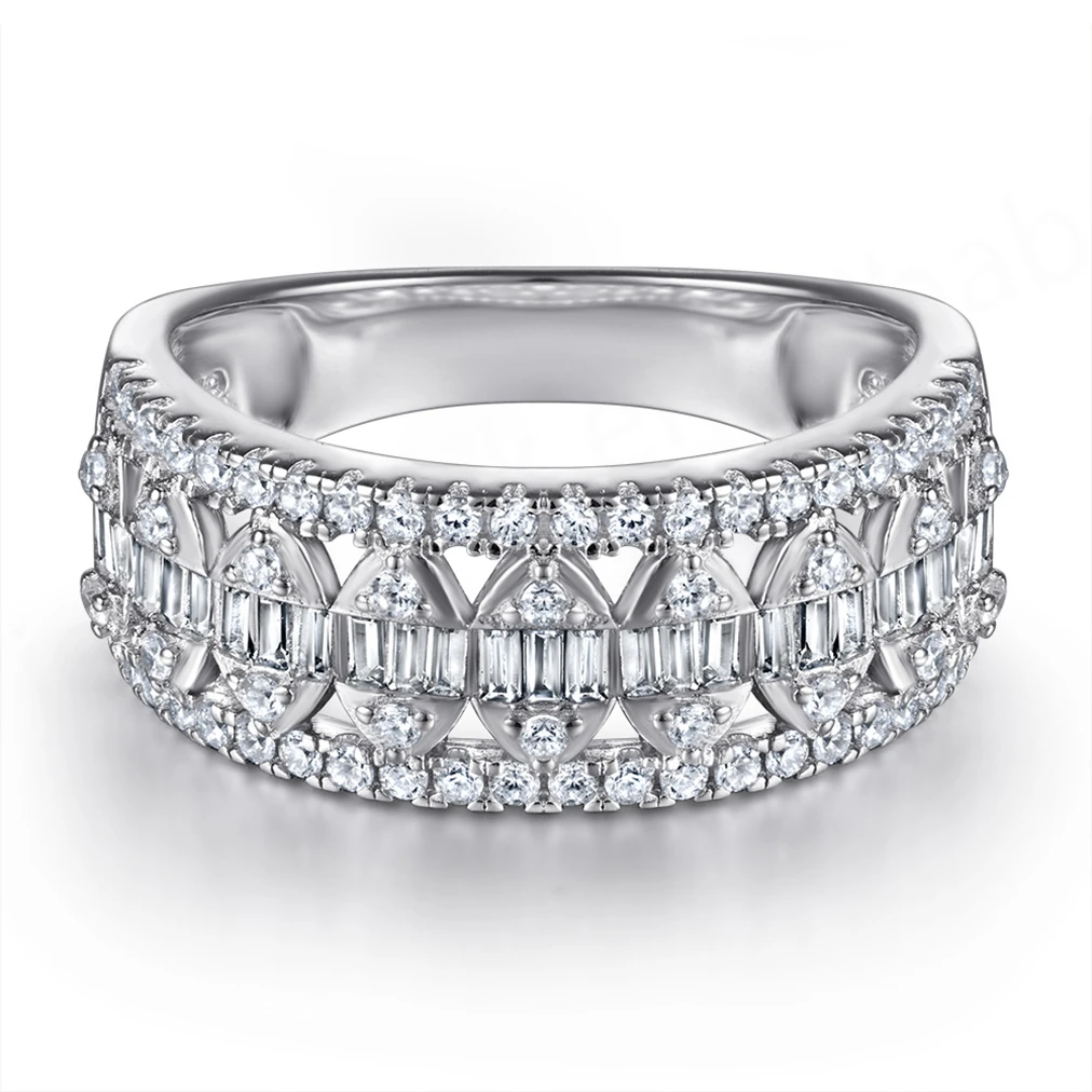 Trendy Luxury Platinum Plated Silver S925 Sterling Lab Diamond Exaggerated Wedding Ring for Ladies Anniversary Factory Wholesale