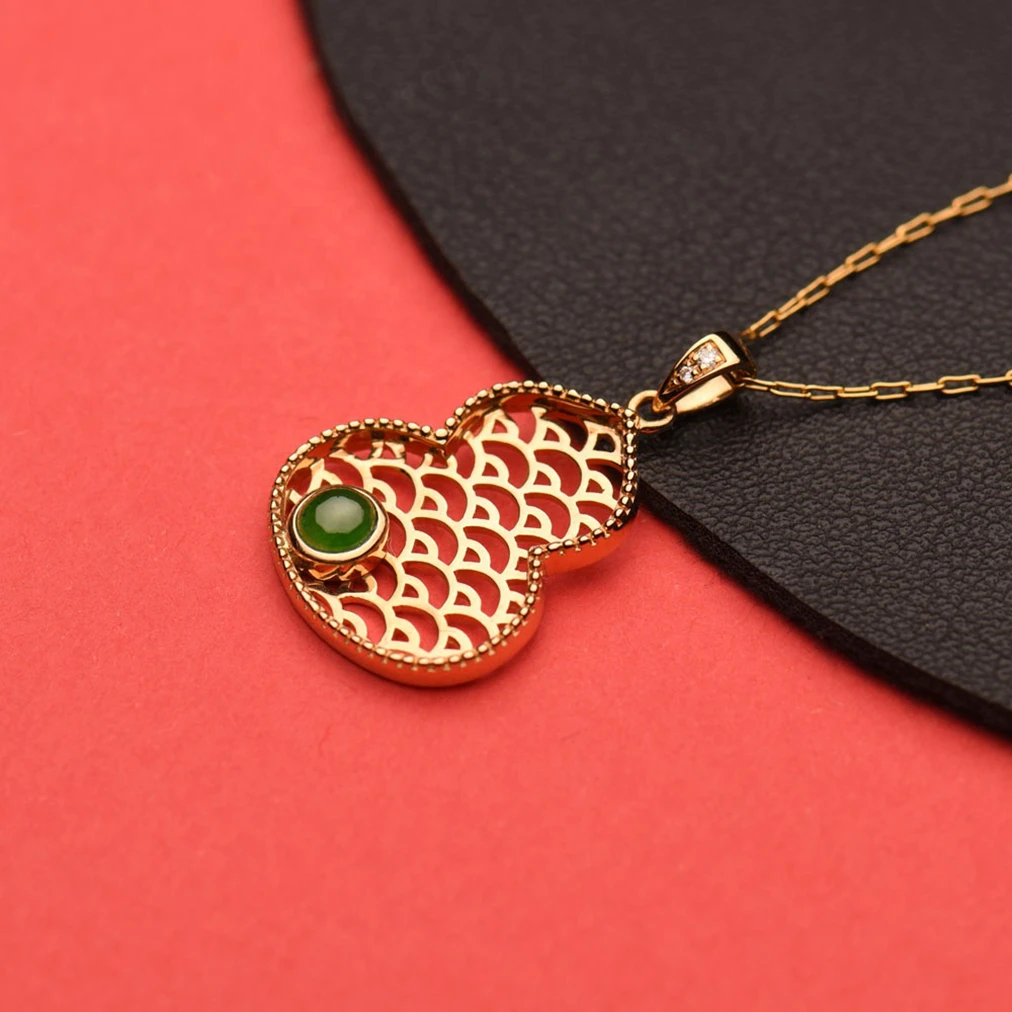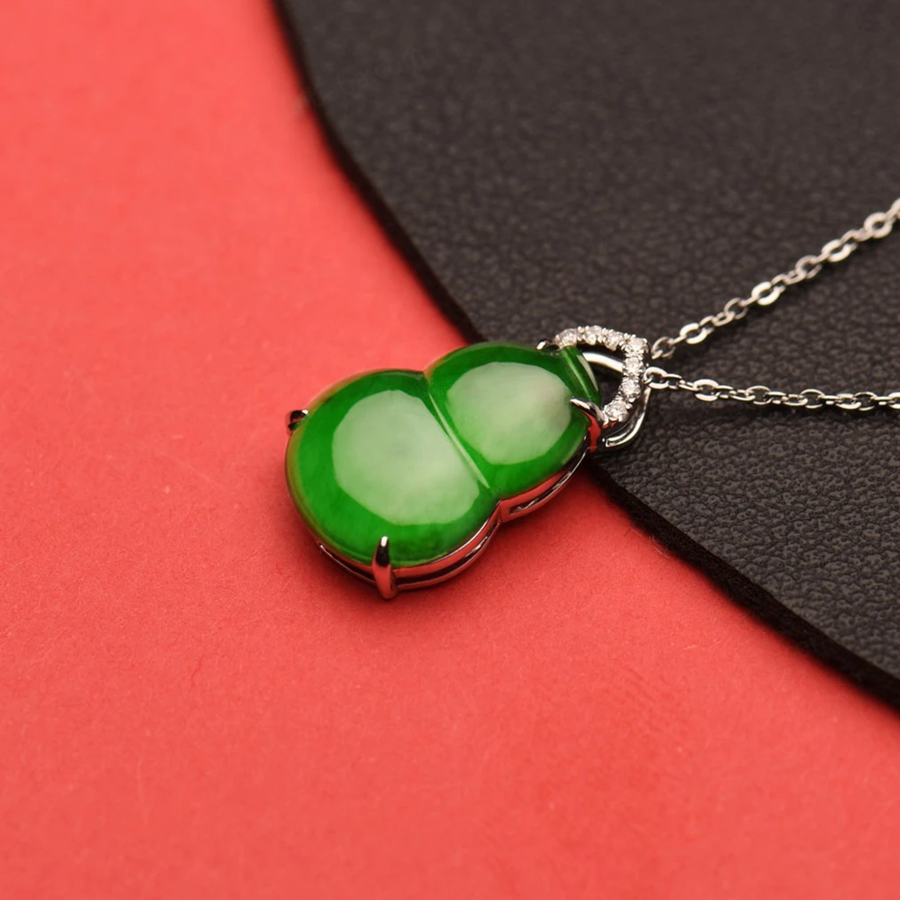 Dainty Natural Jade High Grade Icy Jadeite Cucurbit Charm Pendant 18K White Gold Classic