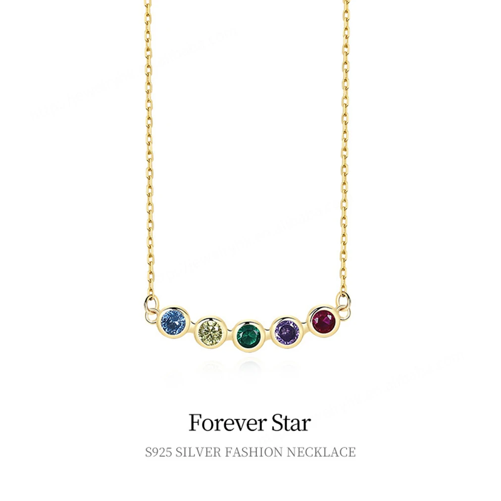 Wholesale Classic Rainbow Necklace 925 Sterling Silver Multicolor Zircon 18k Gold Plated Wedding & Party Necklace