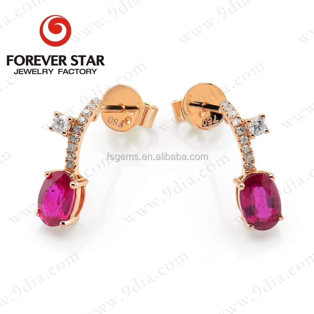 Wholesale 14K Gold Drop Earrings with Oval Ruby Gemstone and Diamond Party Gift Jewelry From China