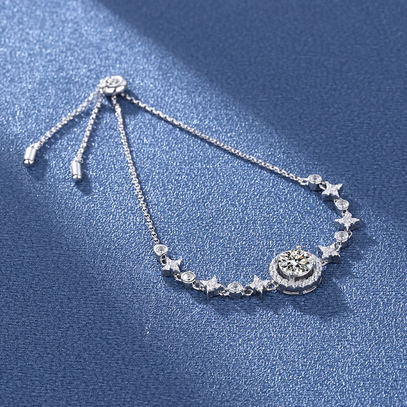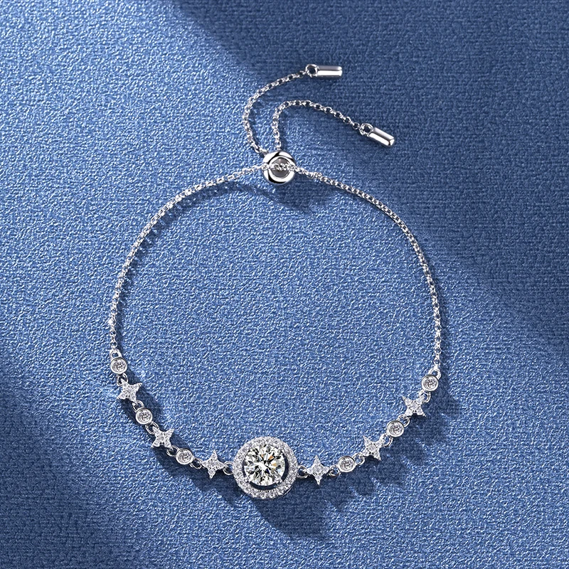 Manufacture Fine Luxury Customizable Star Shaped Moissanite Bracelet 925 Sterling Silver Link Chain Bracelet Women's Jewelry