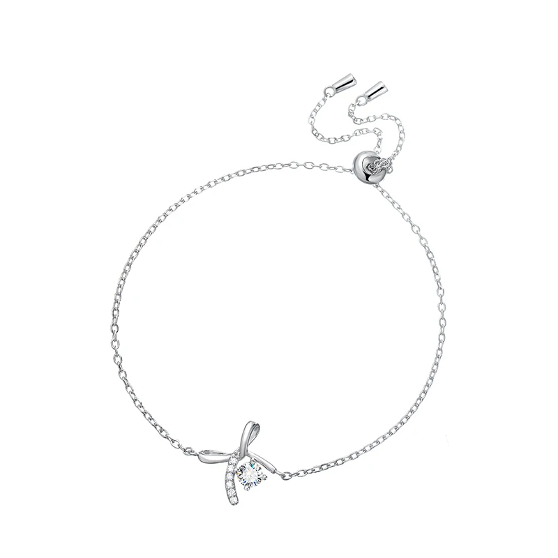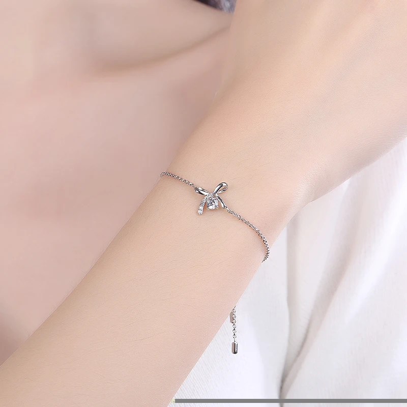 Luxury Fine Adjustable Women Bracelet Sterling Silver S925 Moissanite Bracelet Bowknot Jewelry Wholesale Customize