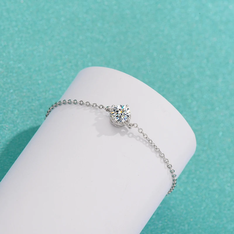 Factory Price Silver Moissanite Bracelet Bangles 925 Sterling Silver White Color 1ct Moissanite Chain Link Bracelet