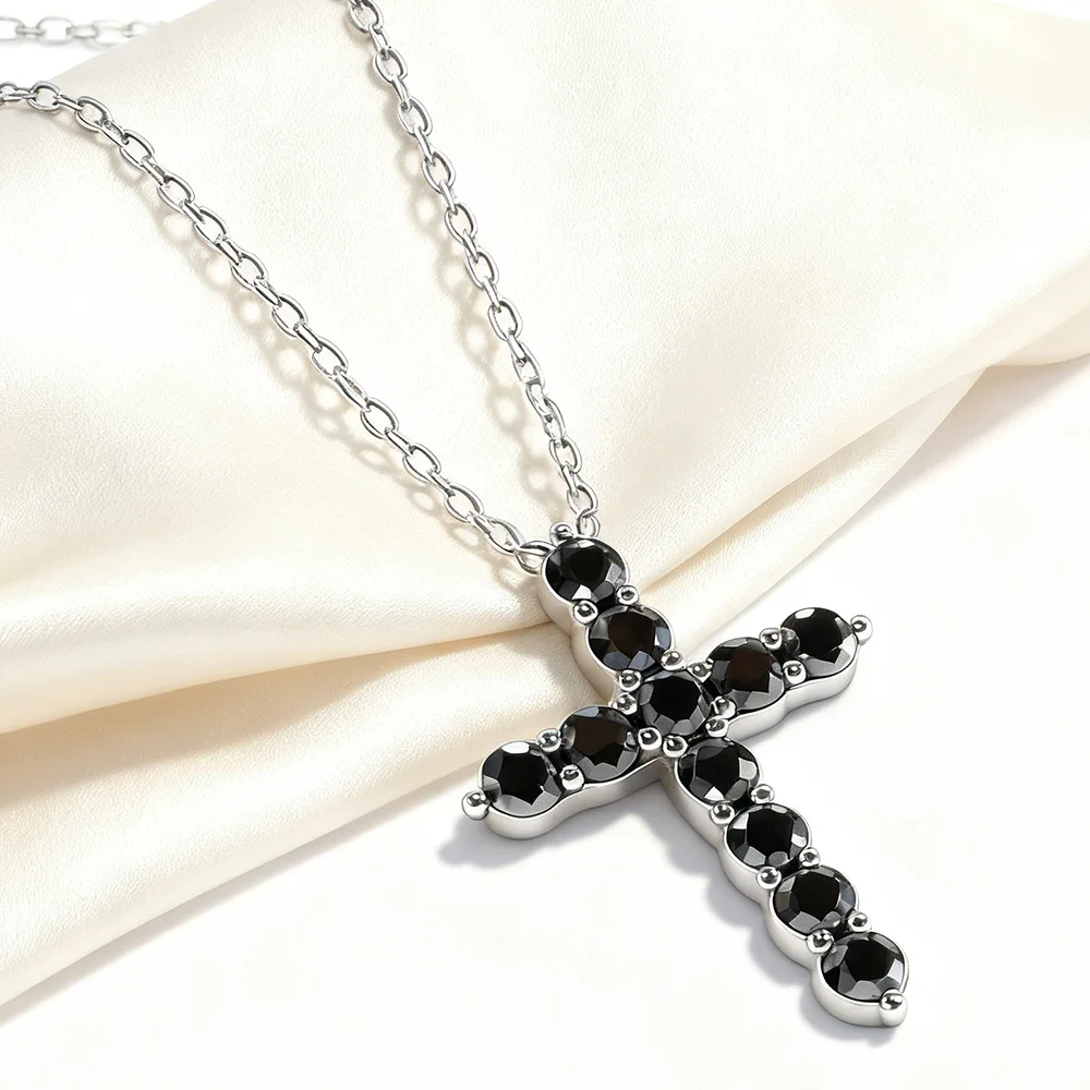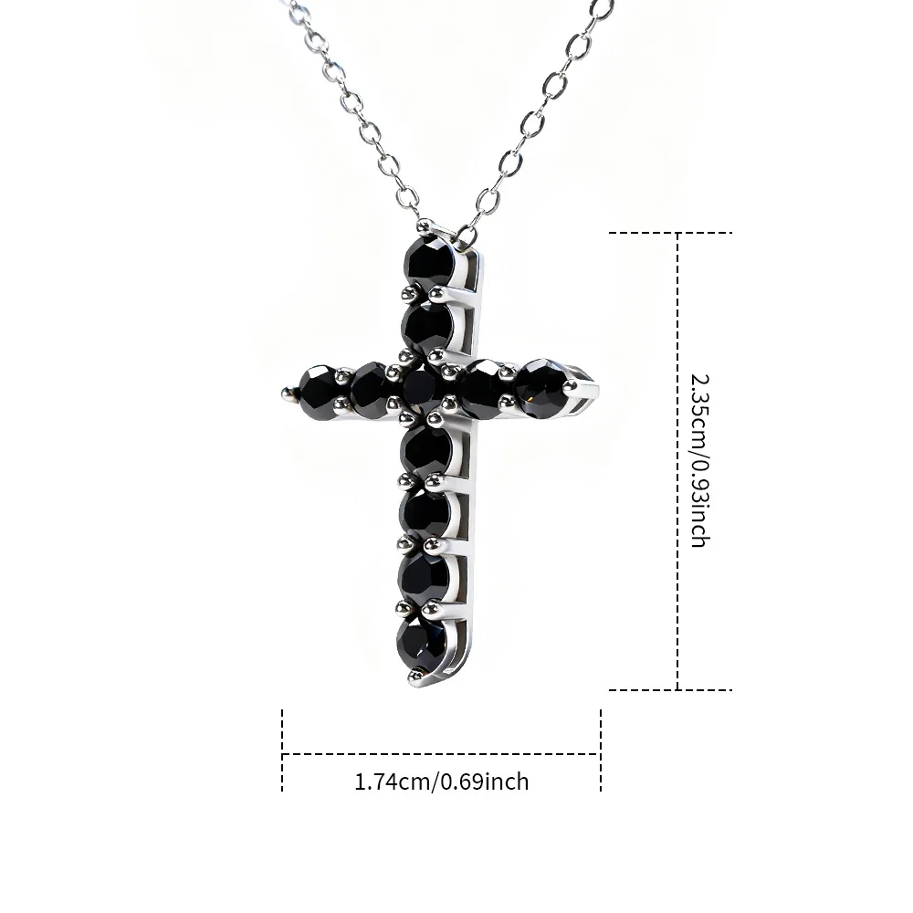 De Chic Cross Design Full VVS Black Moissanite 925 Sterling Silver Pedant Necklace for Women