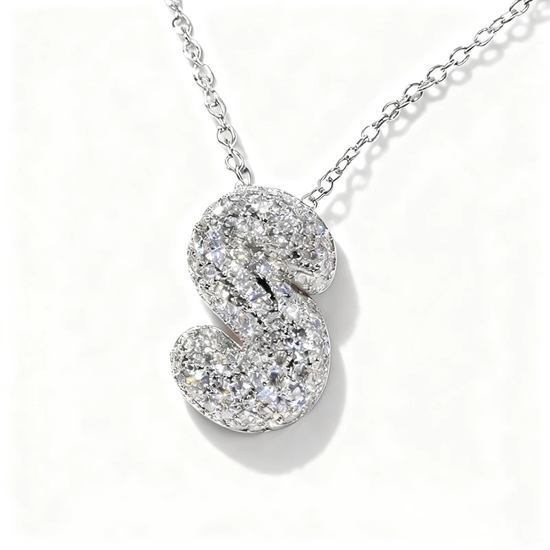 Factory Manufacturer Moissanite Initial Necklace Platinum Plated Personalized 3.53CT Alphabet Pendant for Men and Women