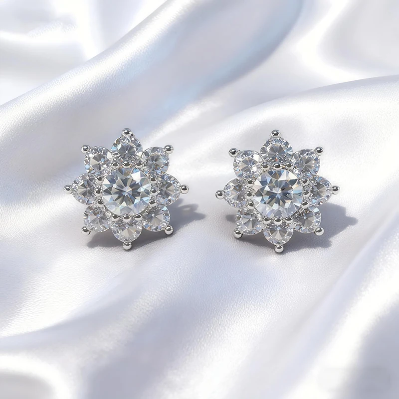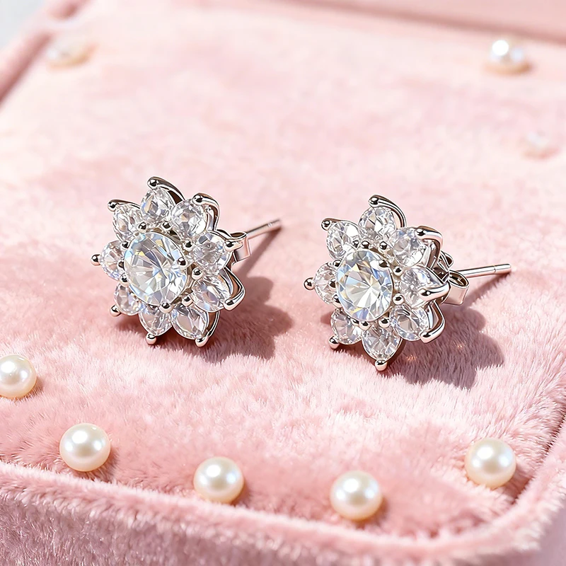 Custom 2026 New Arrival Fine Jewelry 925 Sterling Silver Moissanite Studs Earrings Trendy Bling Sunflower Stud Earring for Women