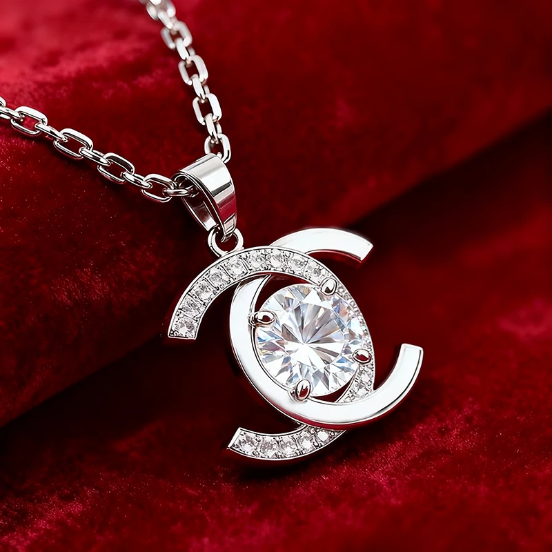 Luxurious Colorful Letter Initial Pendant CC Pendant CC Necklace D Color 1CT Moissanite Necklace