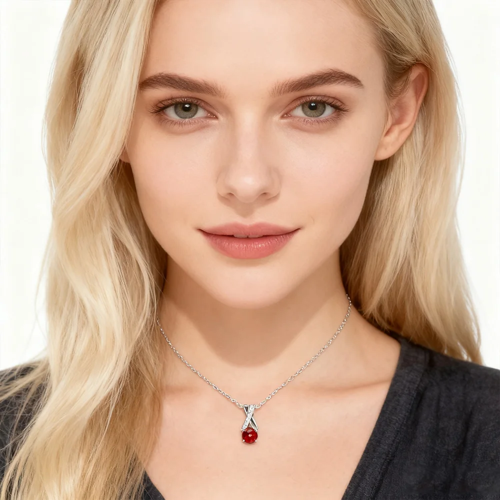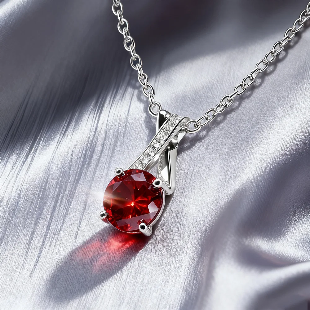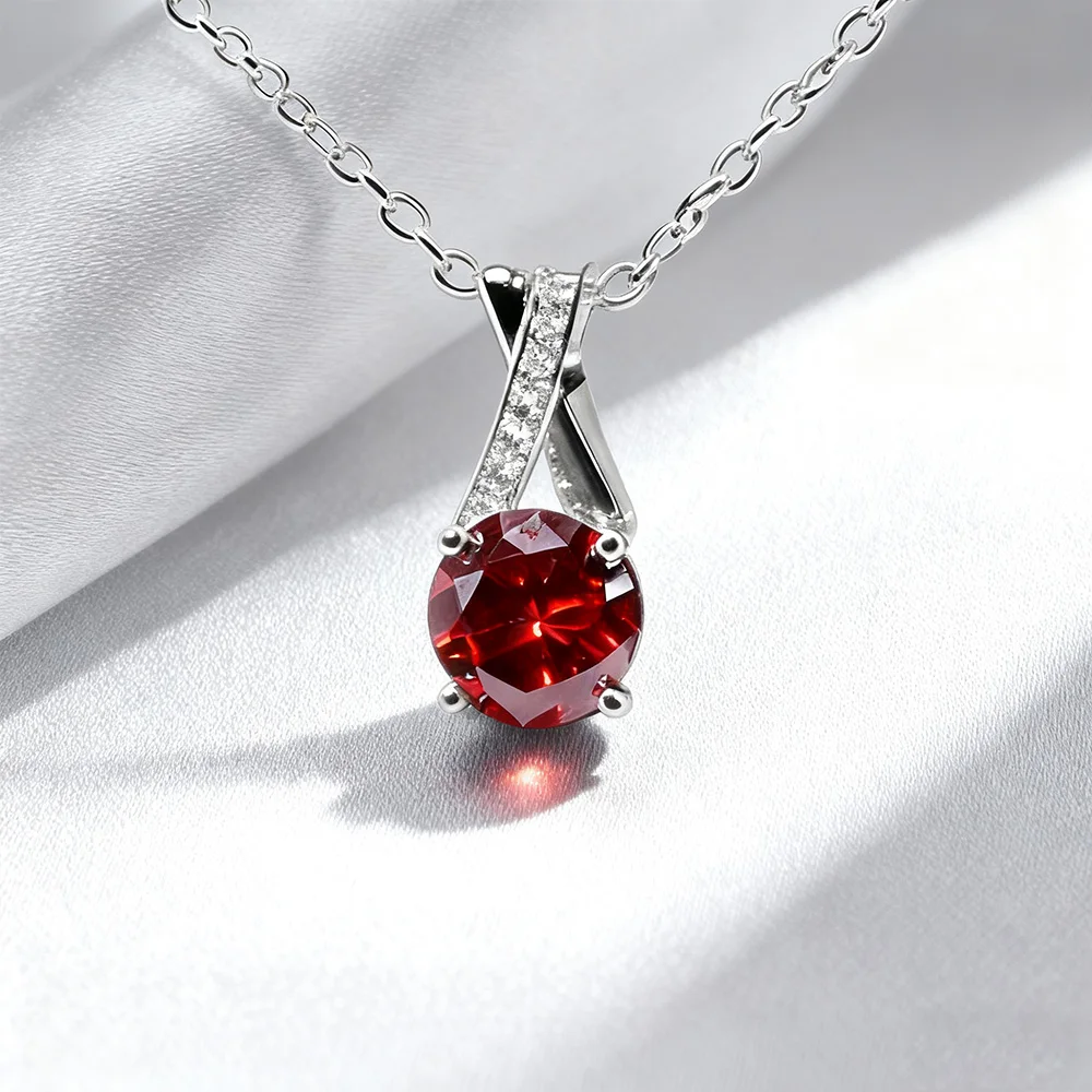 Classic Egg Shape Round Cut 1ct Moissanite Pendant Necklace Red Stone Moissanite Necklace