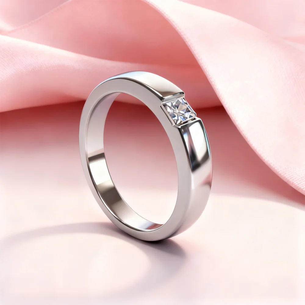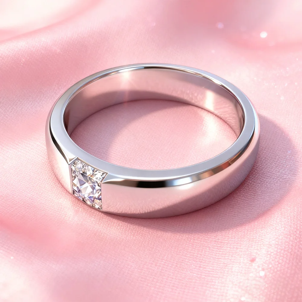 High-End Copper-plated Platinum Proposal Ring with 1ct Moissanite and Diamond Elegant Couple's Moissanite Rings