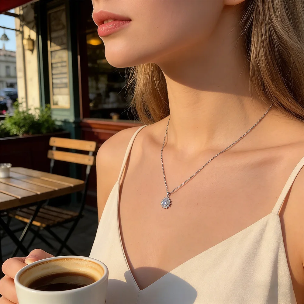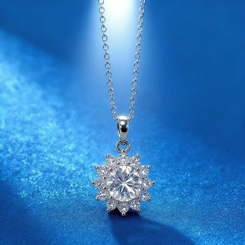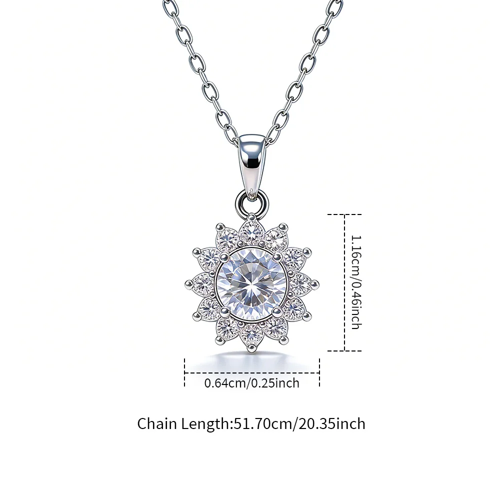Original 925 Silver 1CT Round Cut Moissanite Sunflower Pendant Necklace for Women Past D Color Test