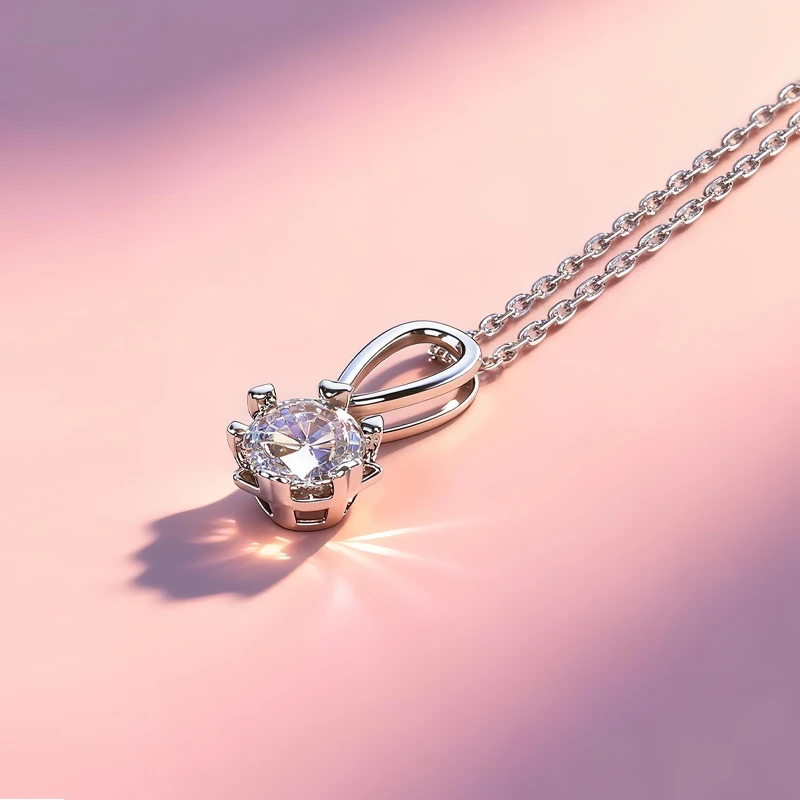 Fashion Jewelry 1.0CT Round Cut Moissanite Pendant 925 Sterling Silver Moissanite Necklaces for Women