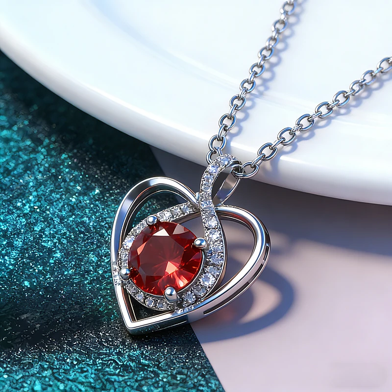 Wholesale 925 Sterling Silver Moissanite Necklace with Heart Pendant Waterproof Tarnish Free Statement Wedding Jewelry