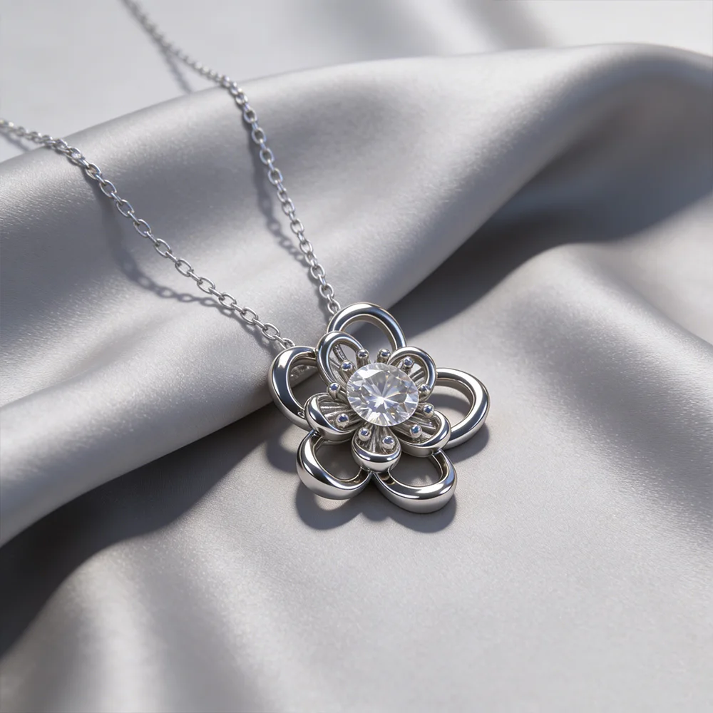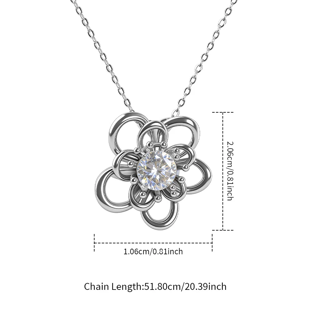 High Quality 925 Sterling Silver Wedding Moissanite Jewelry 1Carat Rotating Petals Moissanite Necklaces for Women