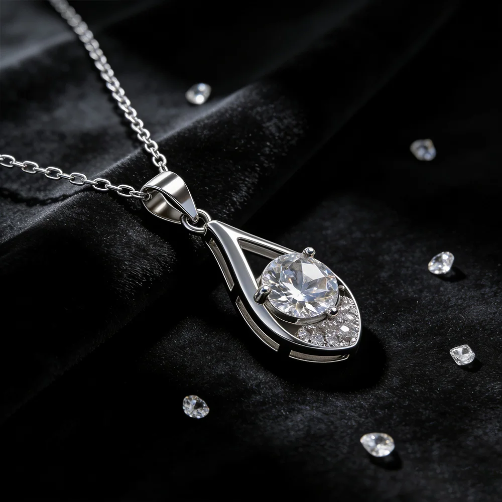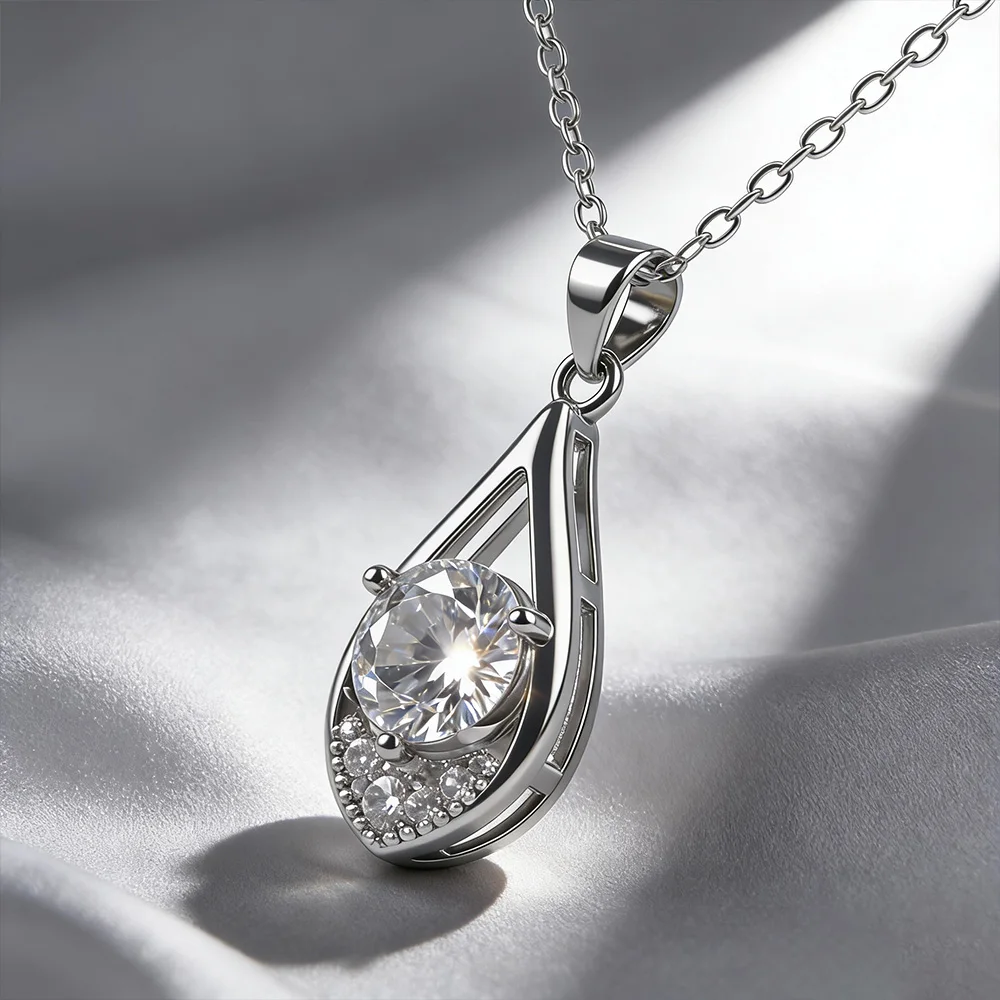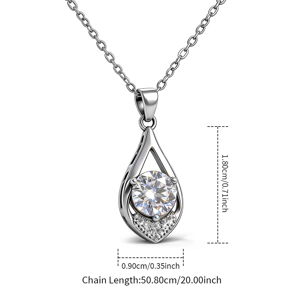 New Arrival Fashionable 925 Sterling Silver Moissanite Pendant Water Drop 1 Carat D Color Moissanite Necklace for Women