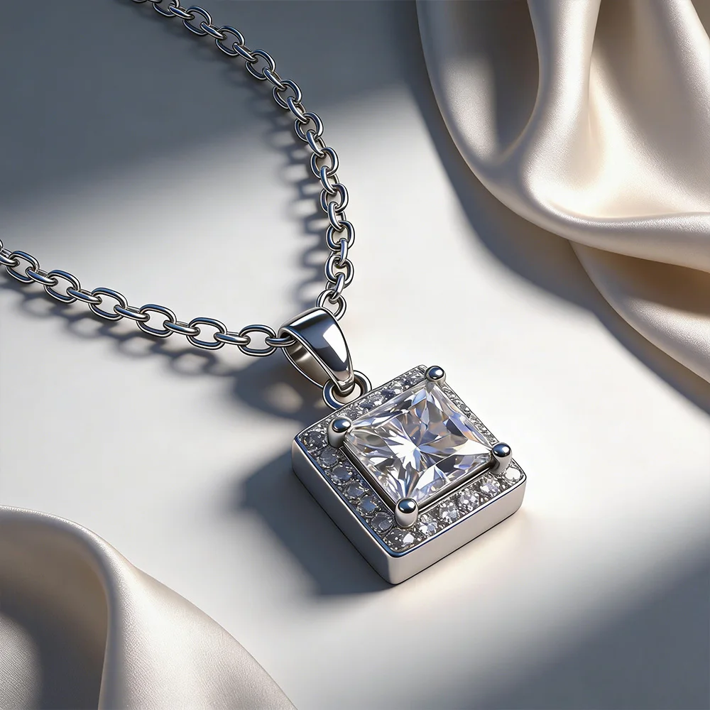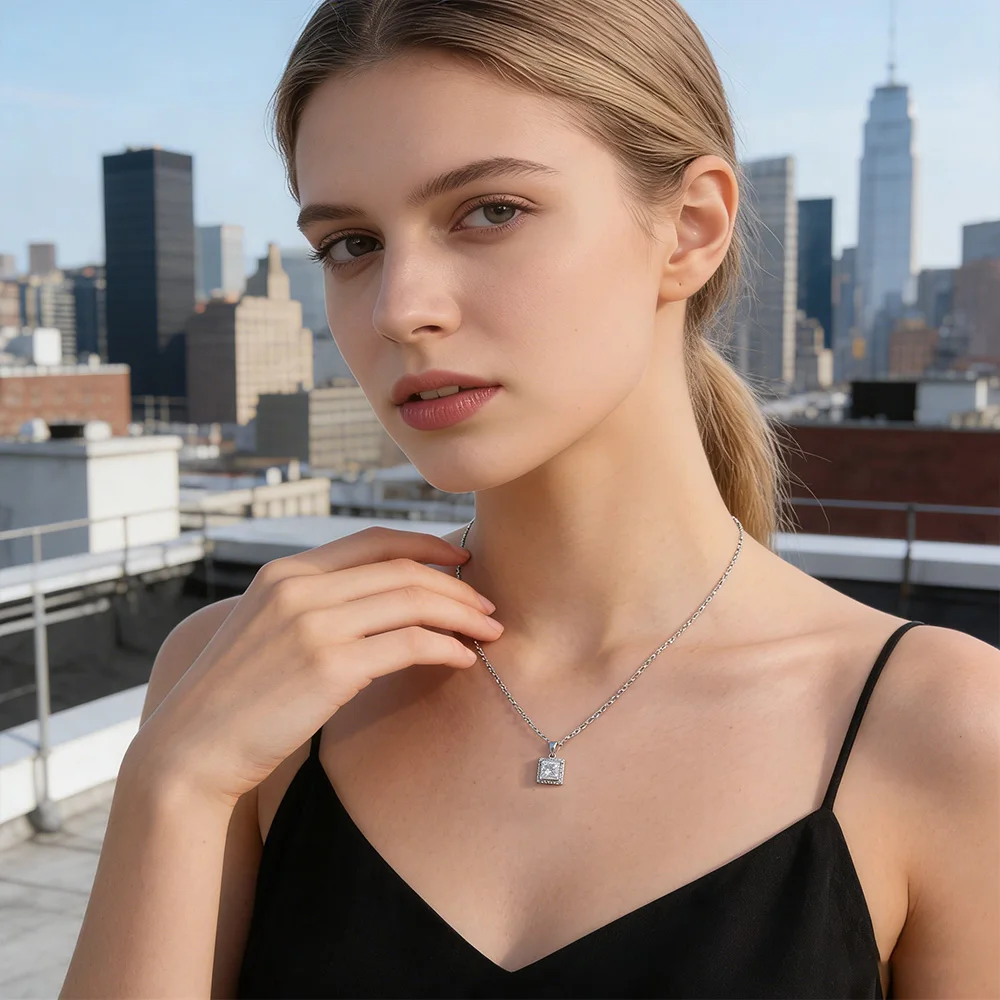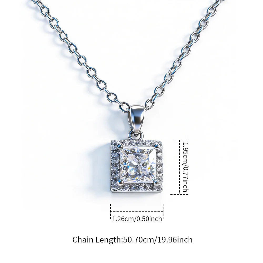 Fine Jewelry S925 Sterling Silver Plated White Gold Princess Square Shaped 1Carat 6mm D Moissanite Pendants Necklace for Girls