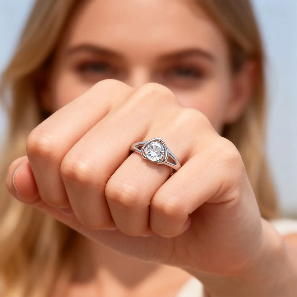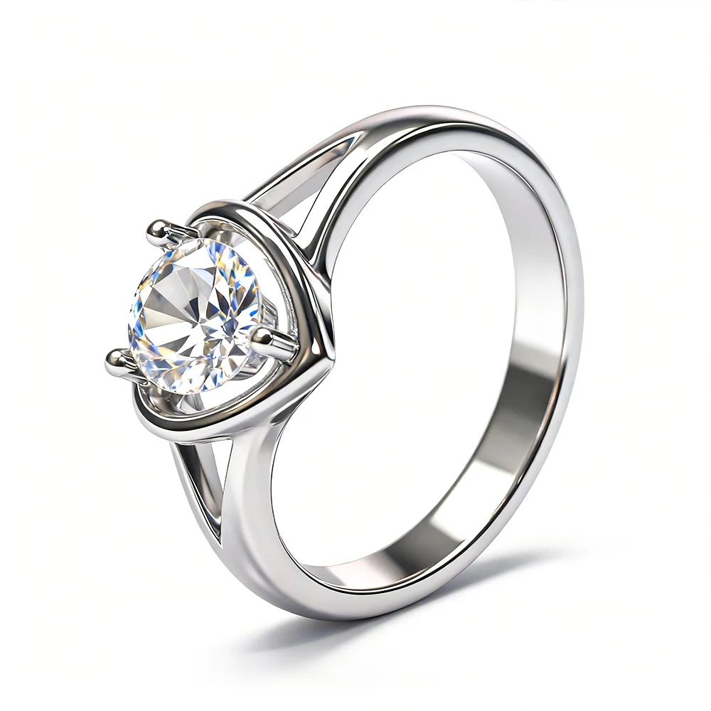 White Gold Classic Solitaire Moissanite Engagement Ring Heart Shape for Women 6mm 0.8Carat Rhodium Plating Elegant Style