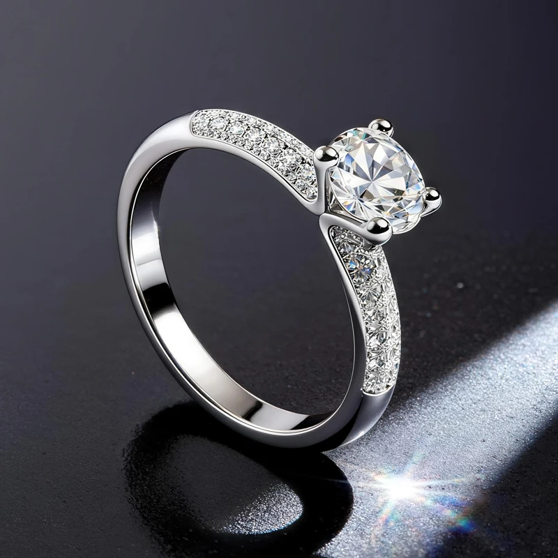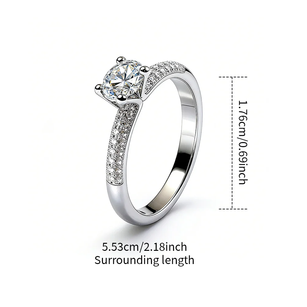Luxury Classic Six-Claw Wedding Proposal Diamond Ring White Gold D Color 1Ct Moissanite Ring for Girlfriend Gift