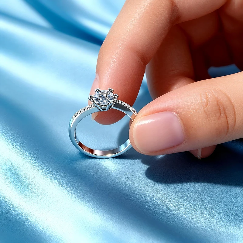 Round Cut 1CT Engagement Jewelry Design White Gold Iced Out Moissanite Ring Luxury Wedding Ring