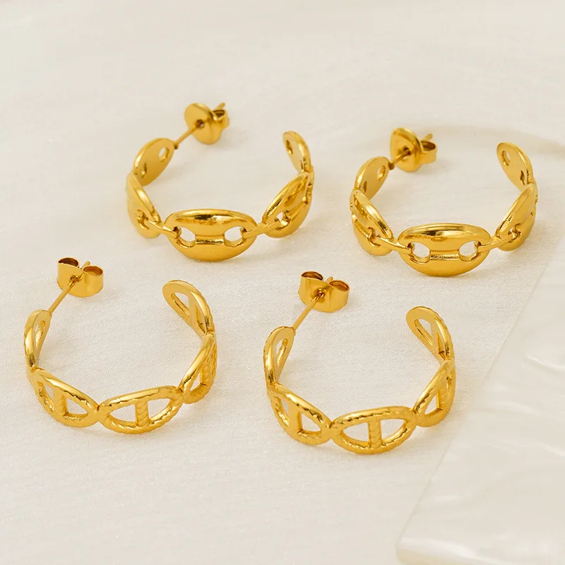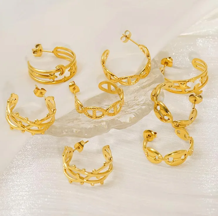 European American New Double-layer Widened Gold Plated Stainless Steel Women's Natural Stone Stud Earrings Dream Star Fashion
