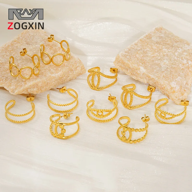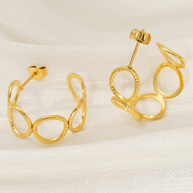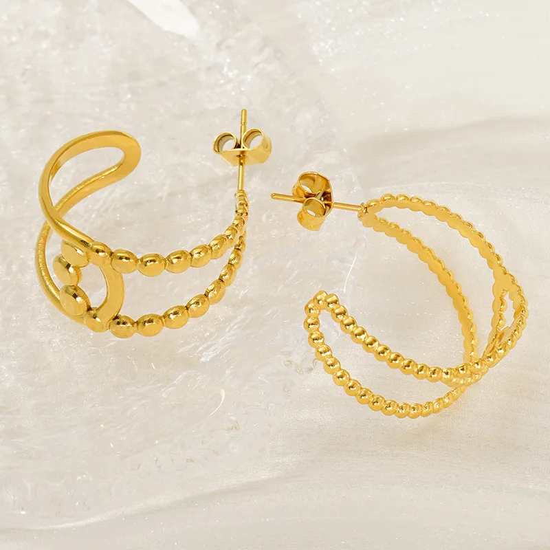Trendy European American Fashion Stainless Steel Double-Layer Geometric Hollow Stud Earrings Gold-Color Plating for Anniversary