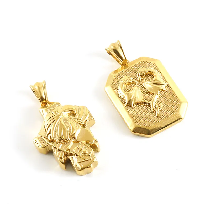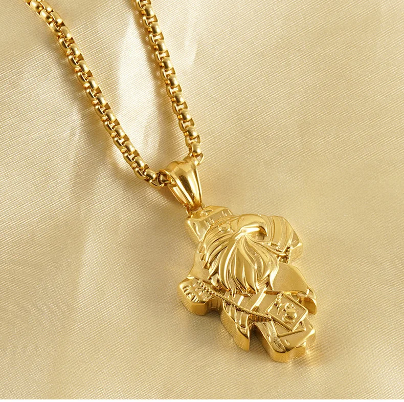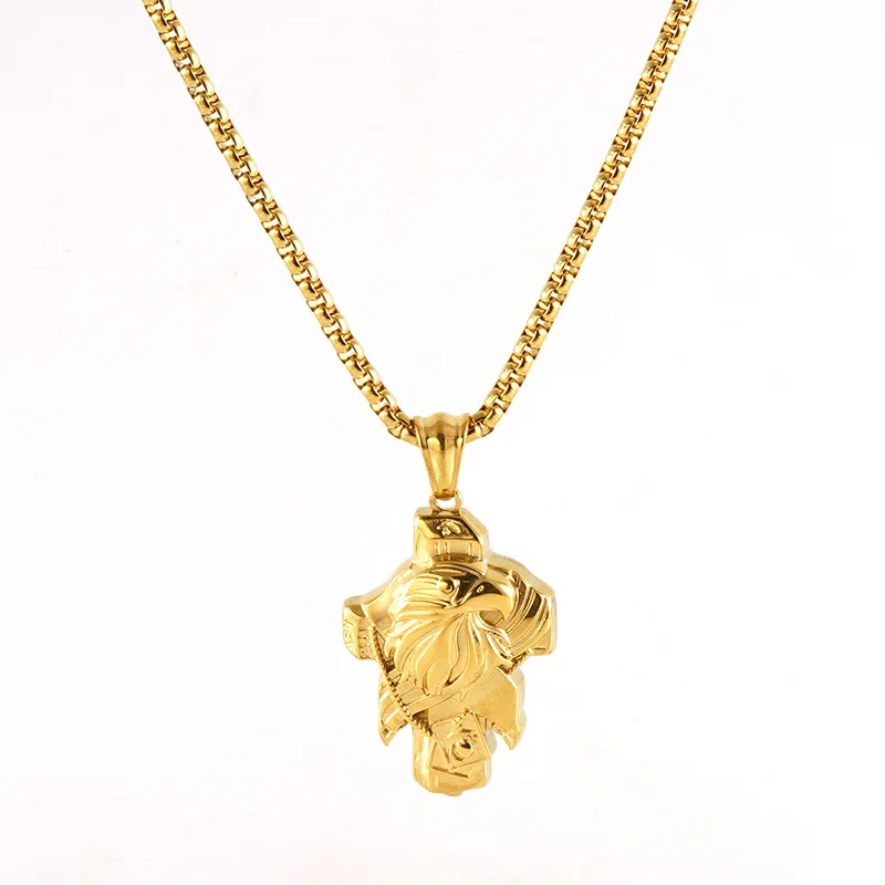 Stainless Steel Diamond Desert Eagle Pendant 18K European American Wind Titanium Unisex Sporty Bamboo Chain