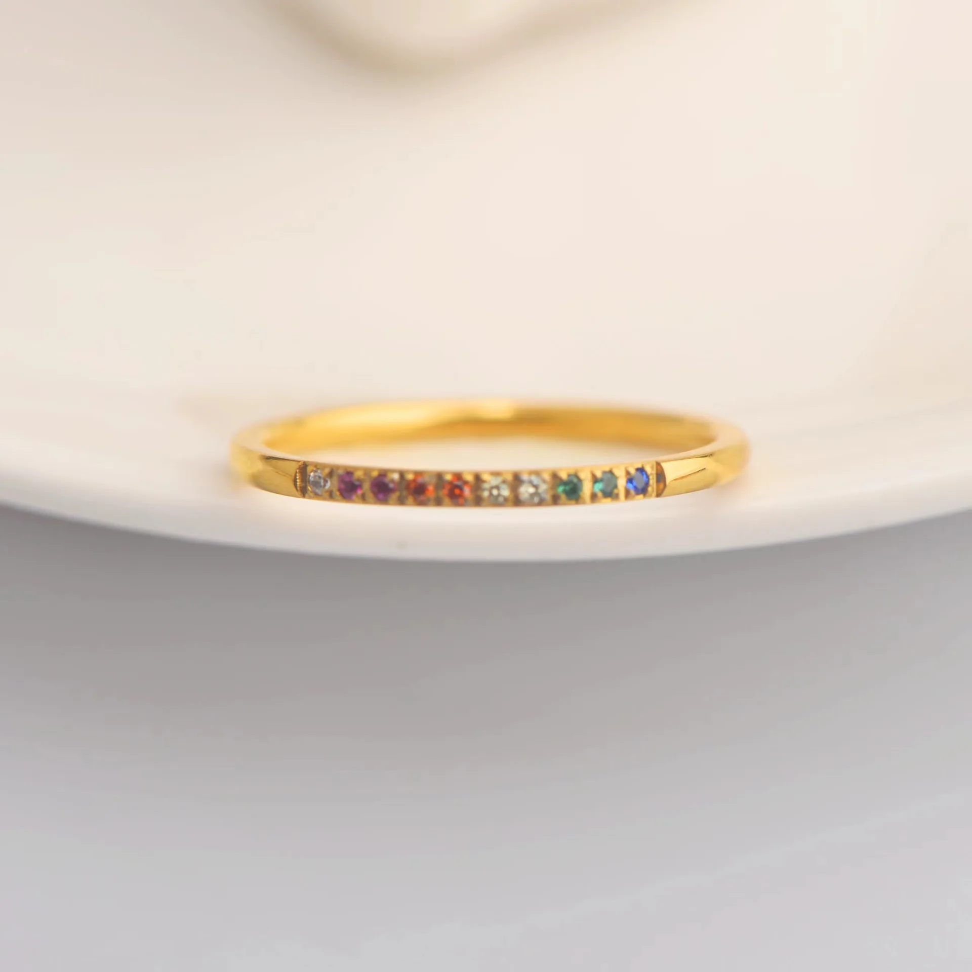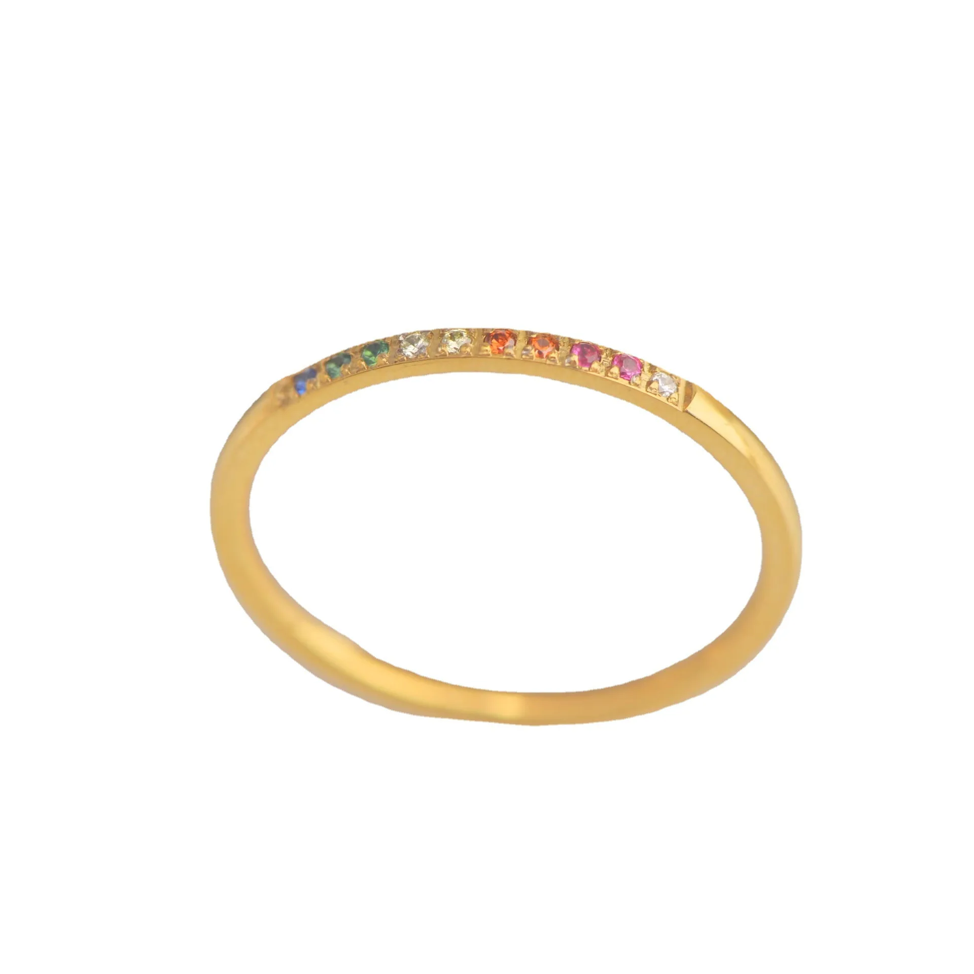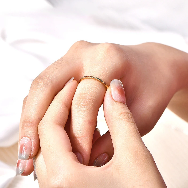 European American Romantic Ins Style Stainless Steel Gold-color Plated Zircon Gemstone Ring for Unisex Anniversary