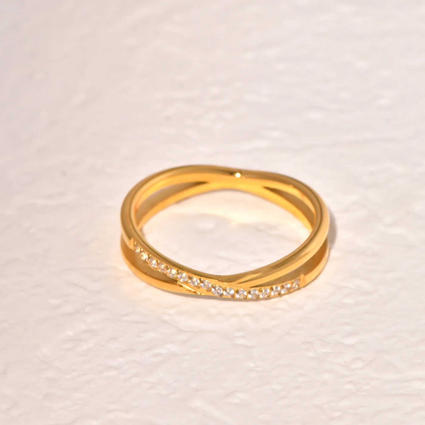 1pc Plated 18k Gold Cross Diamond Natural Stone Ring Women's Stainless Steel Trendy Daily Wear Anniversary Light Luxury