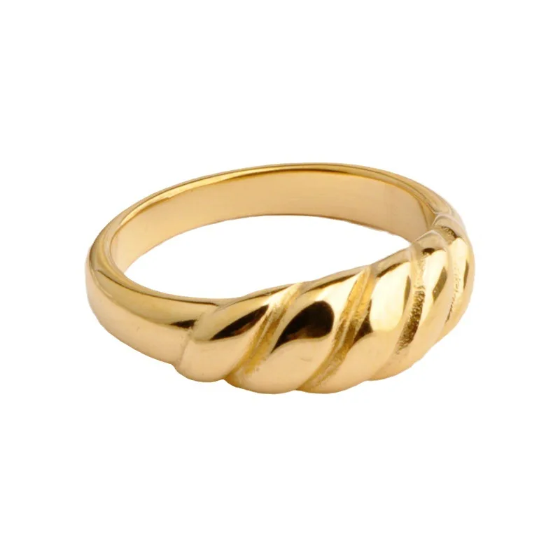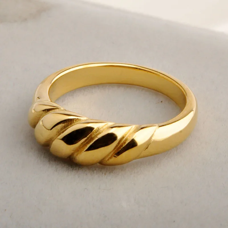 Hot Sale Women's Stainless Steel Shell Geometric Croissant Face Ring Trendy Golden Twist Thread Dome Seal Anniversary