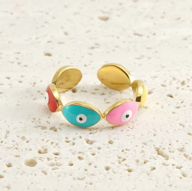 Stainless Steel European American Fashion Personality Sweet Cool Wind Devil's Eye Ring Gold-color Plating Trendy