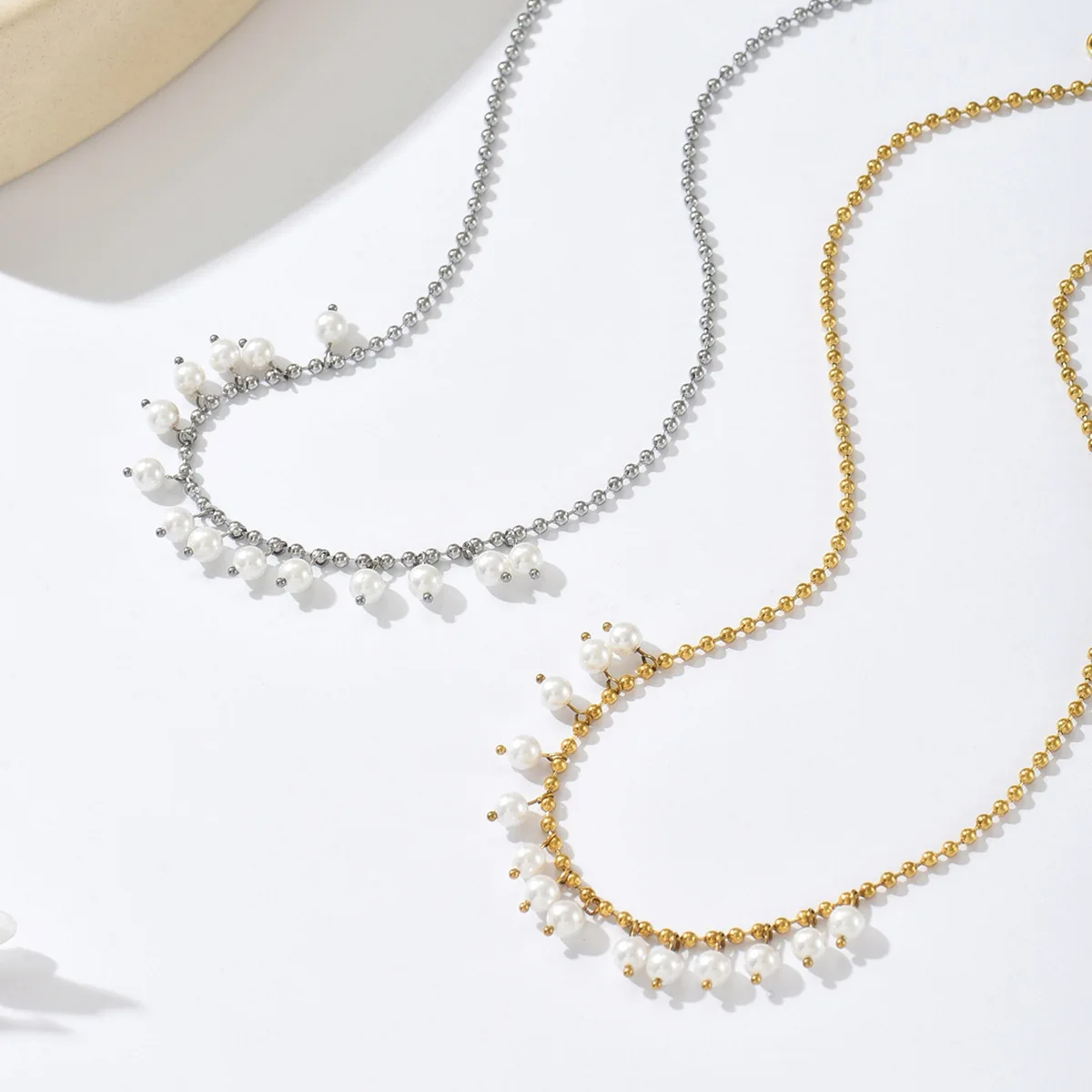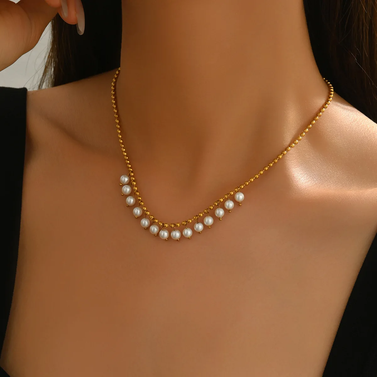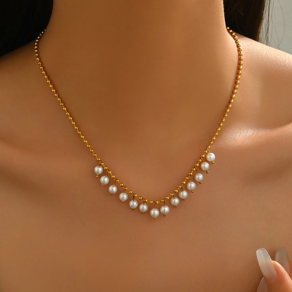Light Luxury Fashion Elegant Imitation Pearl Tassel Bamboo Chain Necklace Gold-plated Temperament Gentle All-match