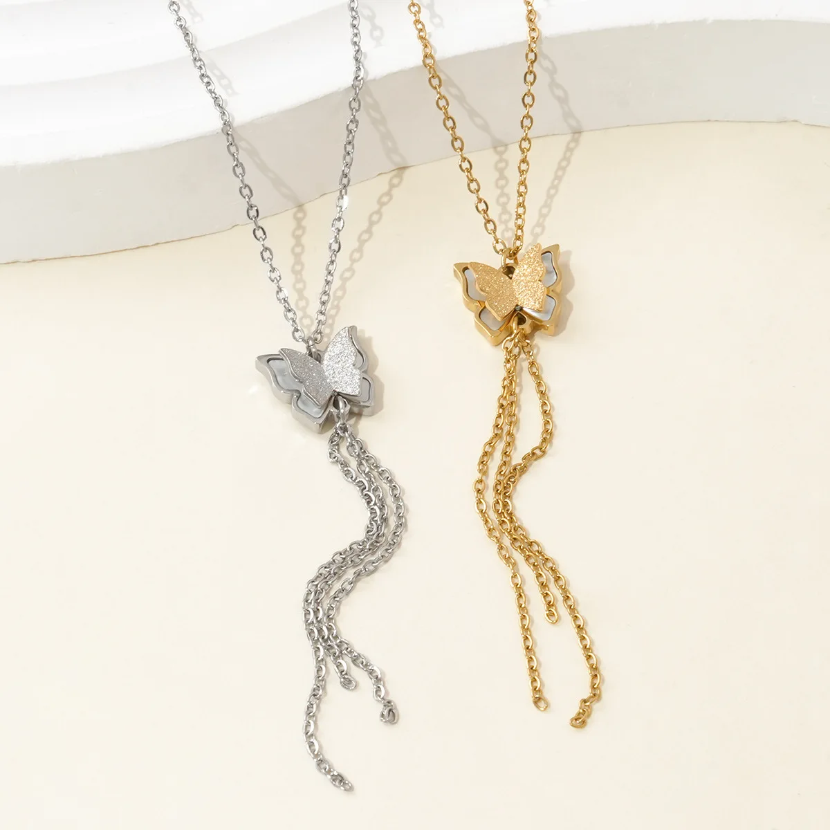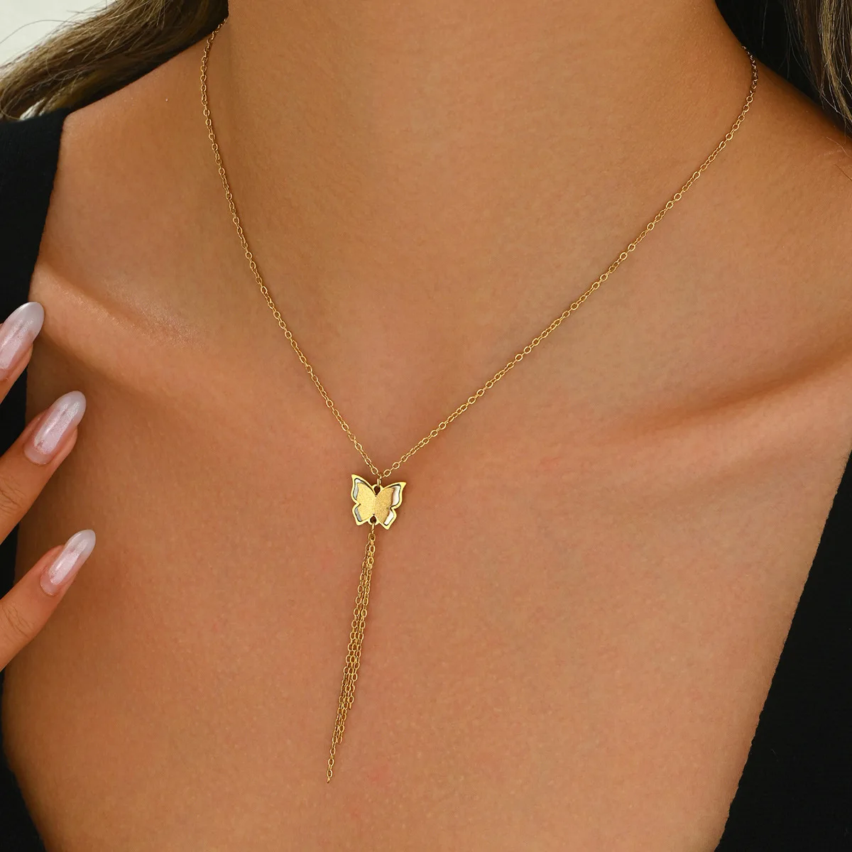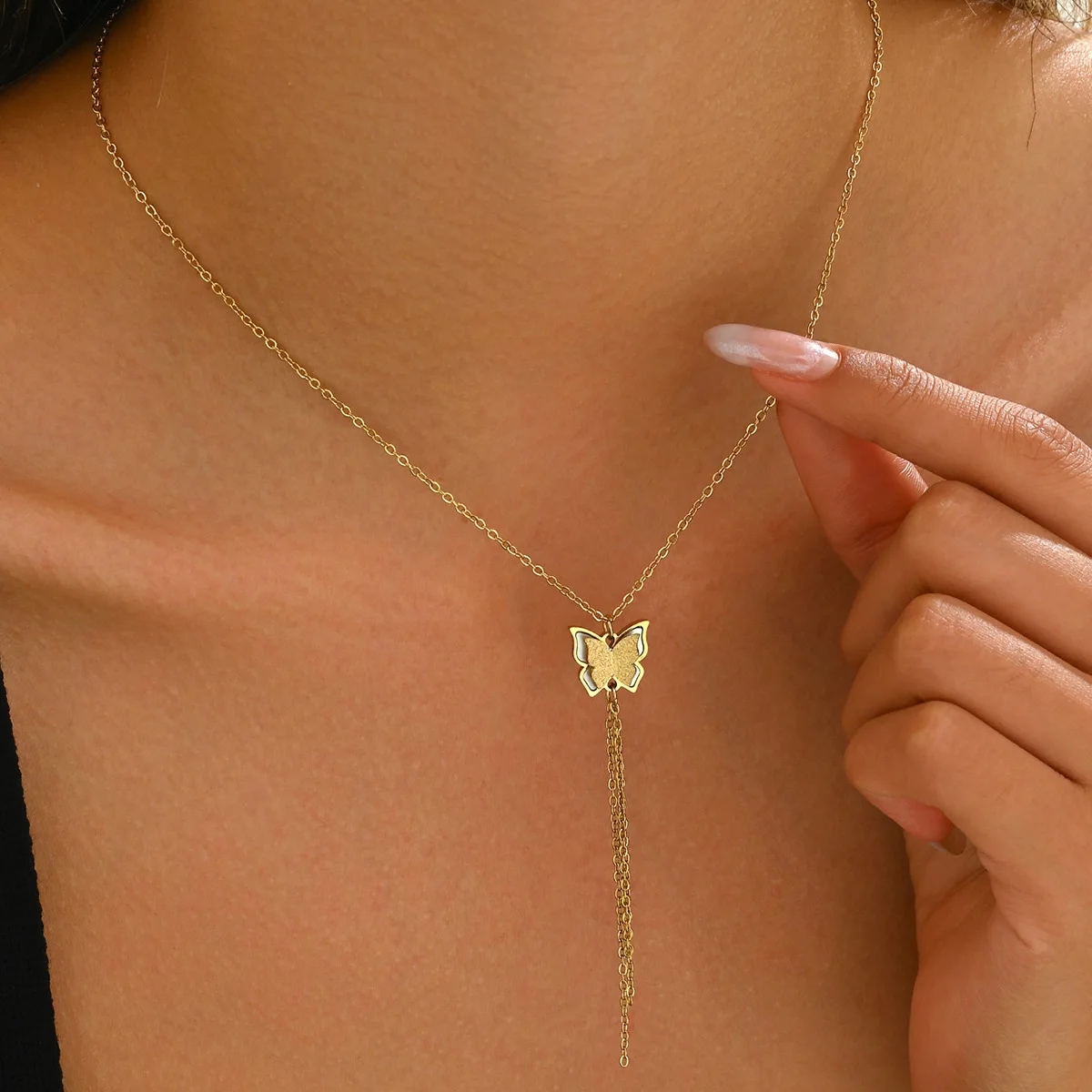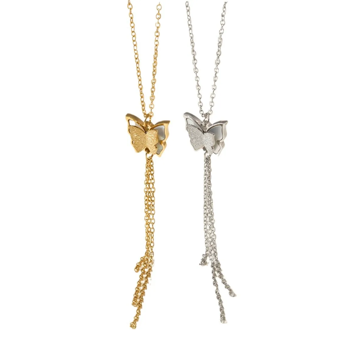 New Style Cyber Celebrity Natural Real Fritillaria Copper Butterfly Diamond Necklace Sporty Color-free Tassel Design Link Chain