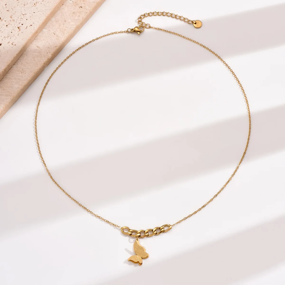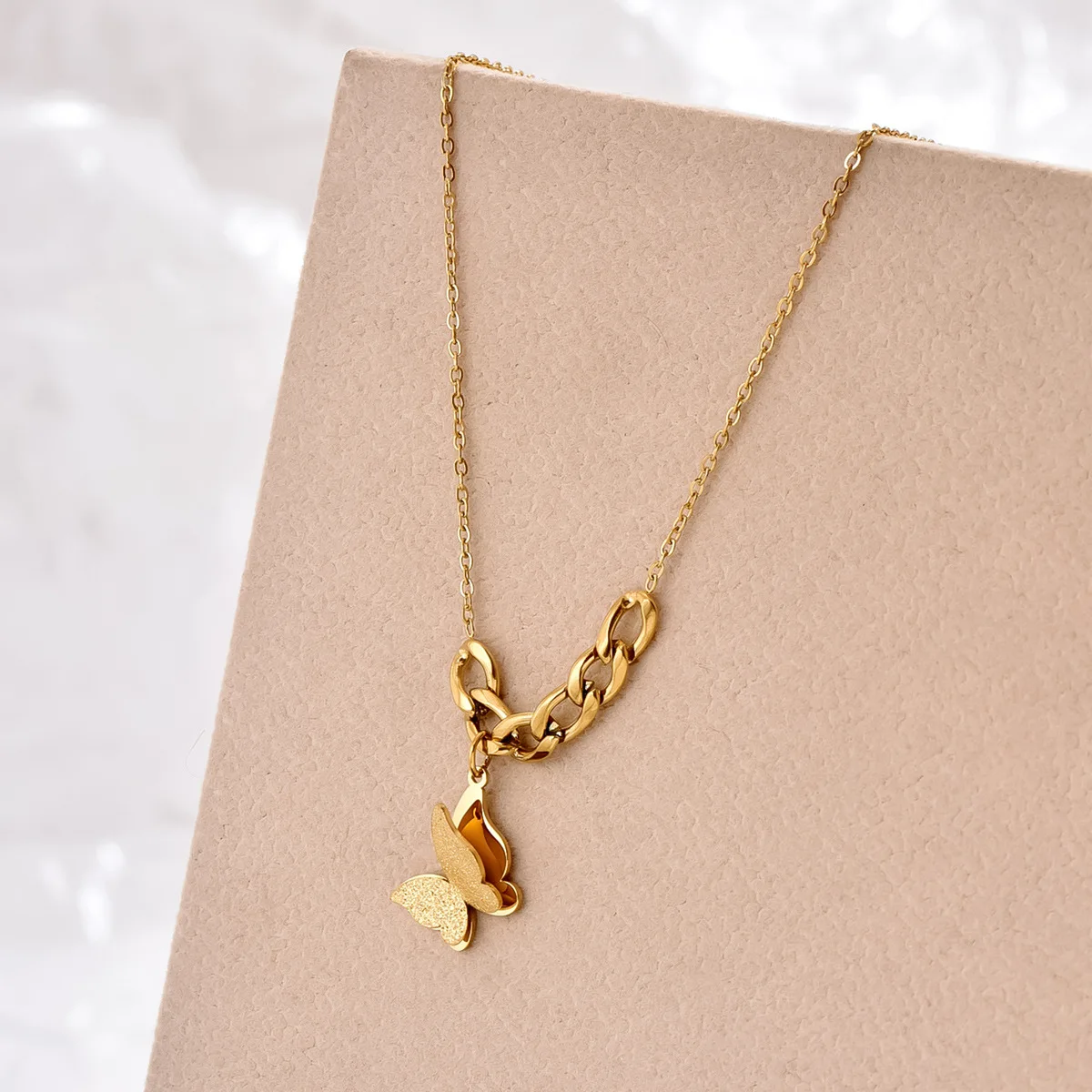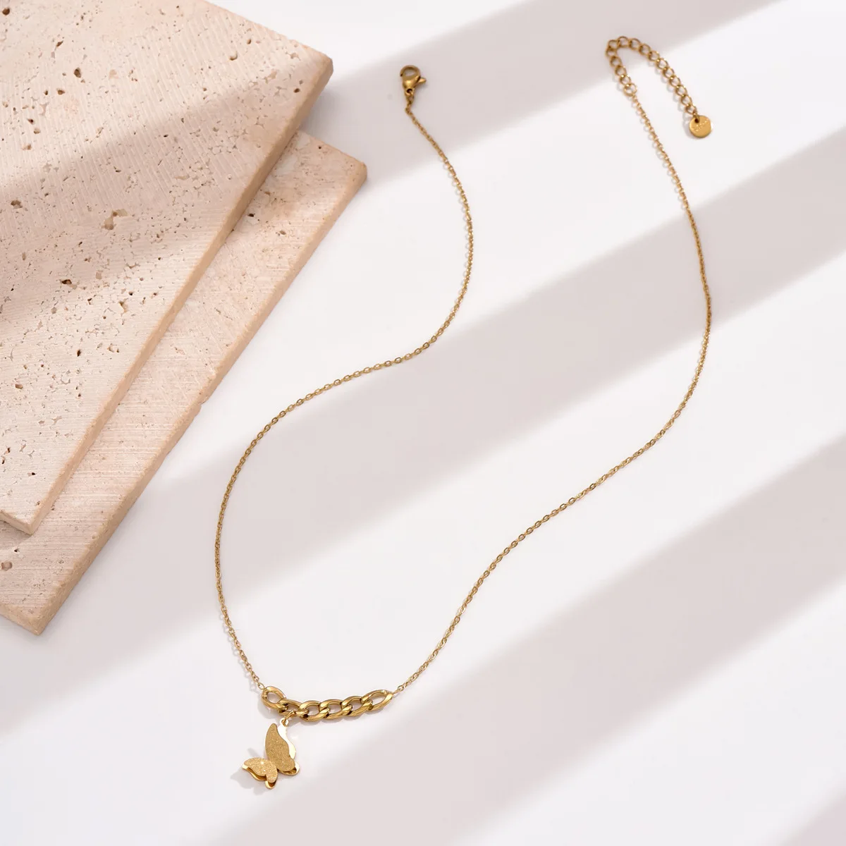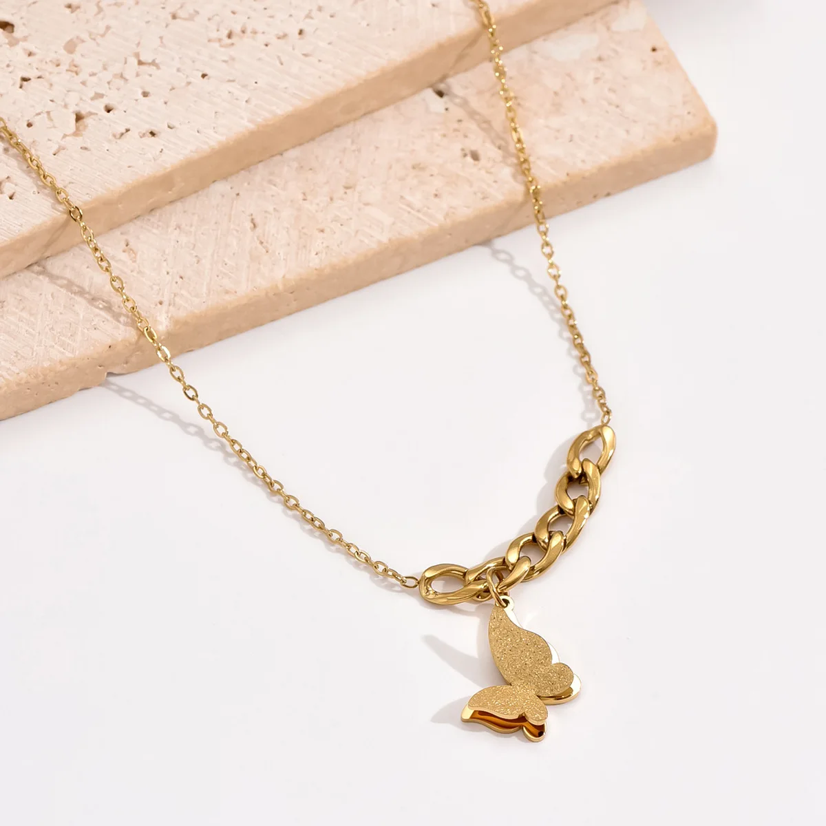 Red Fashion Design High Sense Vacuum Plating Stainless Steel Sporty Bamboo Chain Butterfly Women's Pendant Necklace