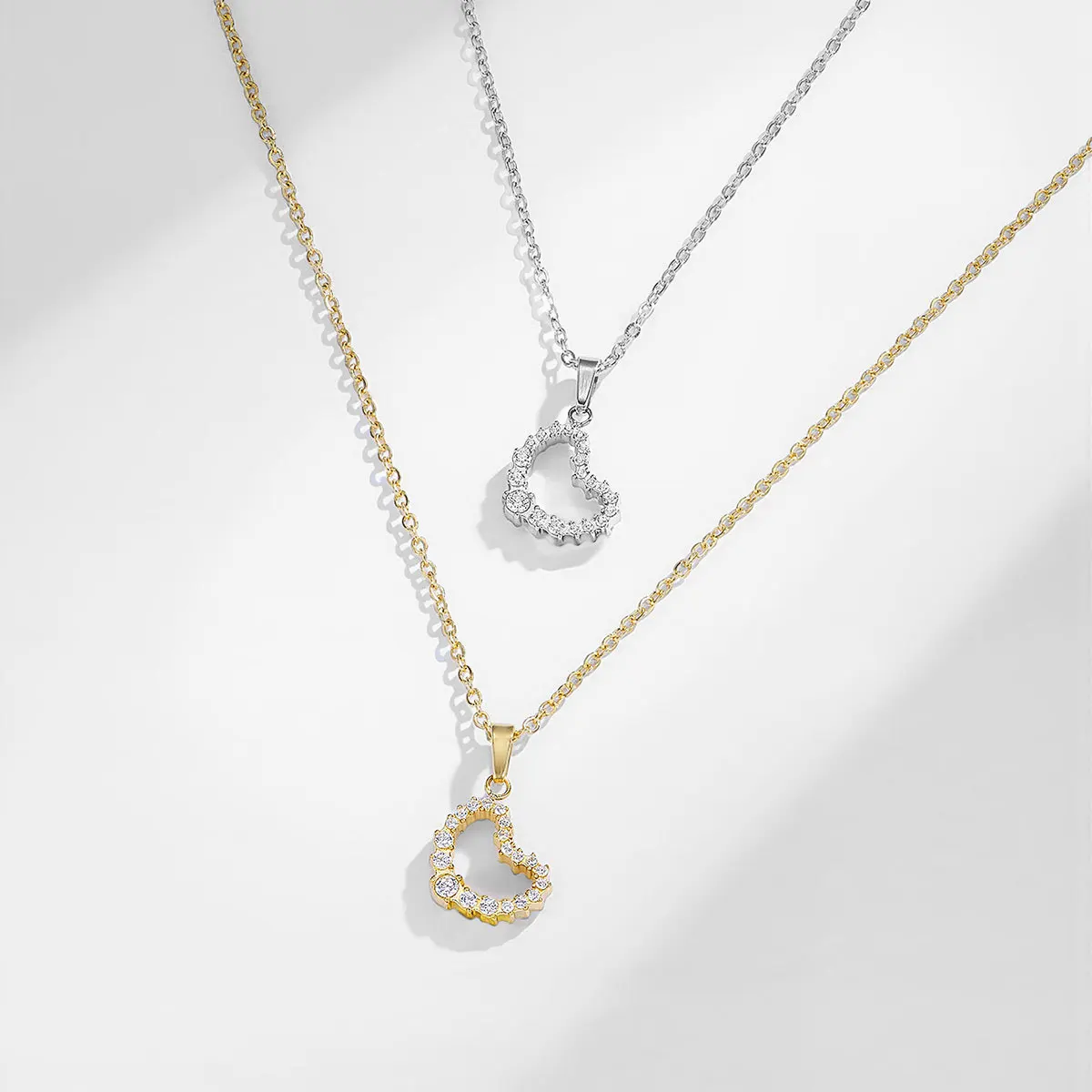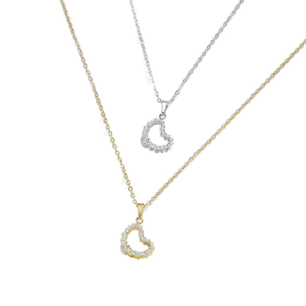 Europe United States Simple Versatile Sporty Jewelry Peach Heart Inlaid Zircon Necklace Stainless Steel Vacuum
