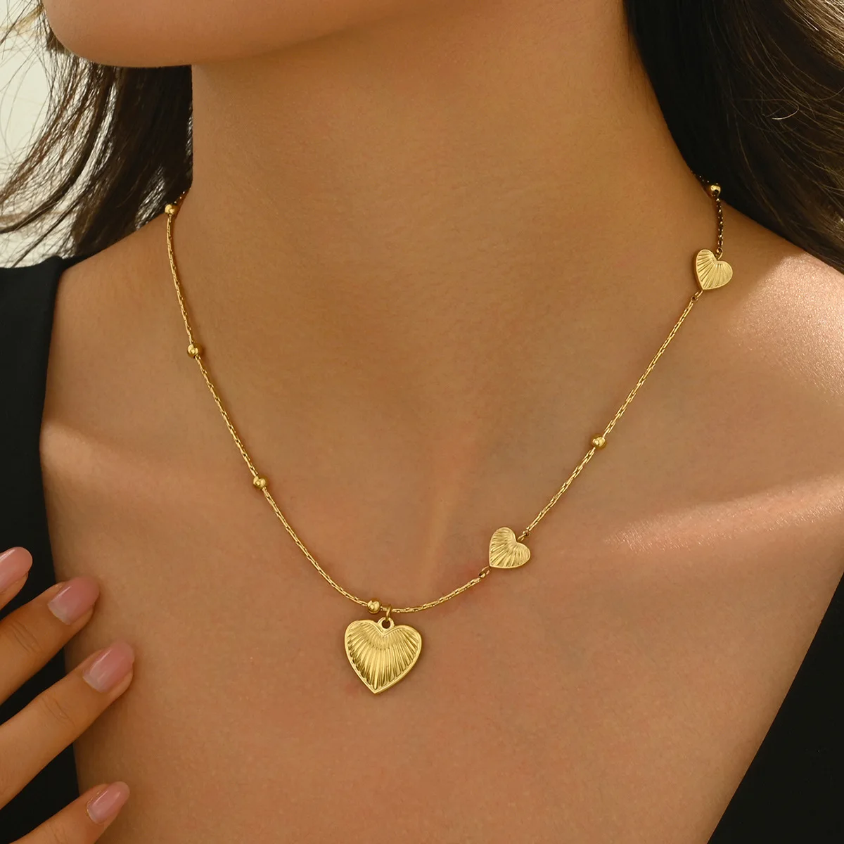 European American Stainless Steel Heart Pendant High-grade Sense Niche Dating All-match Titanium Steel Women's