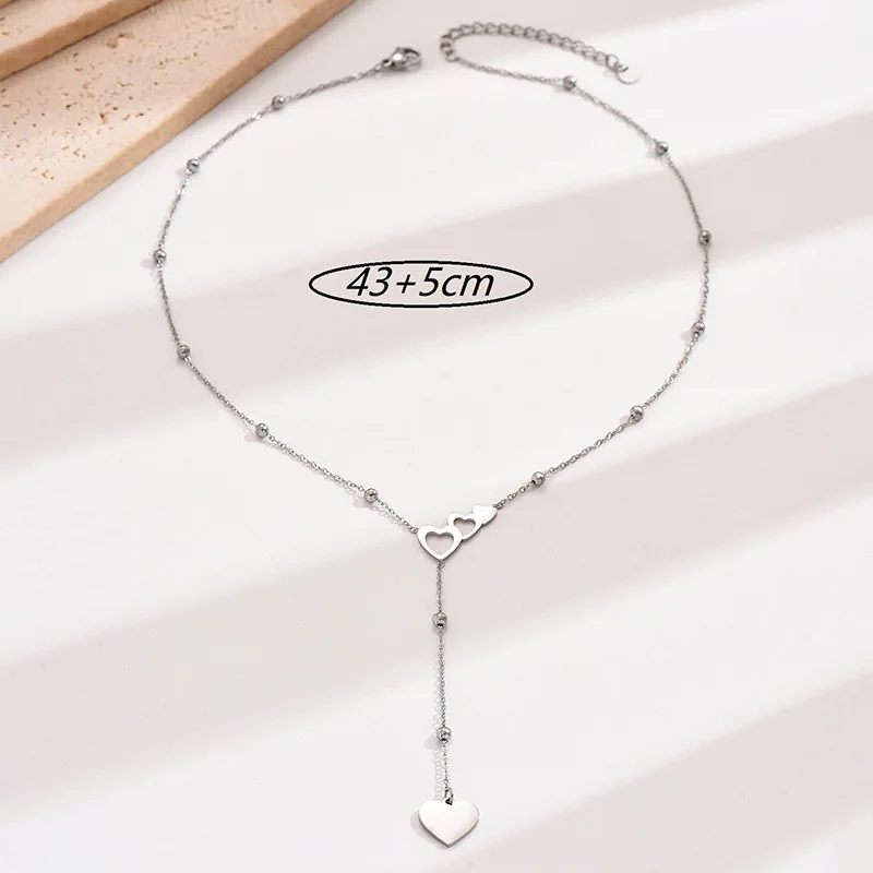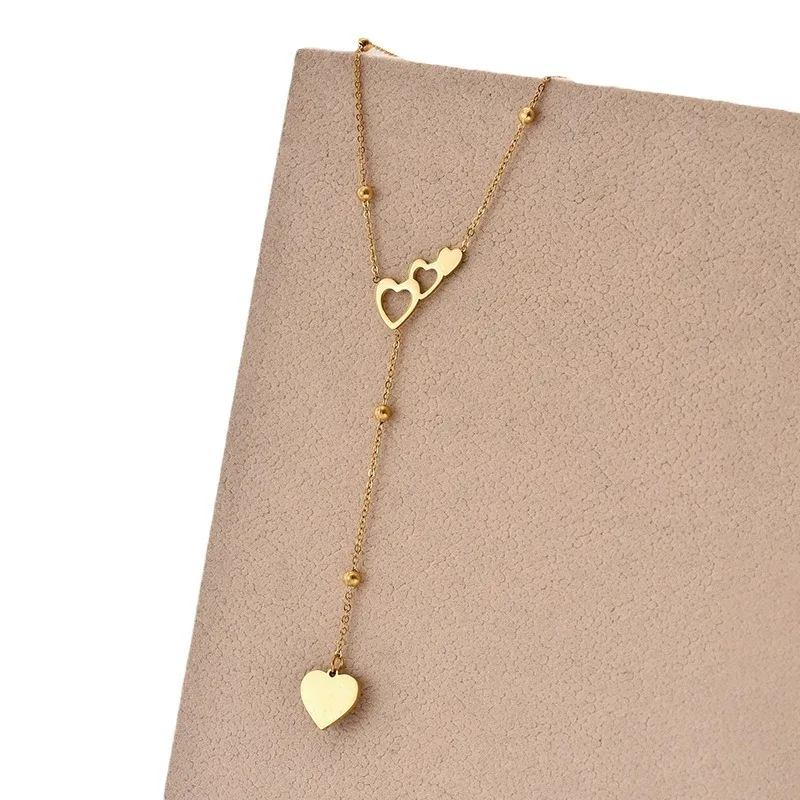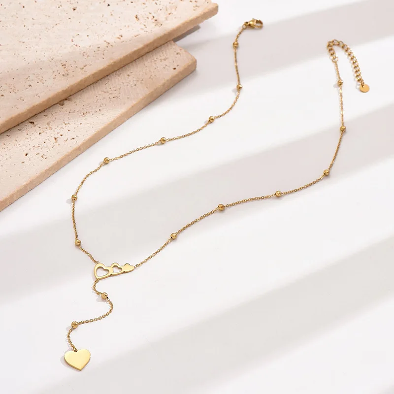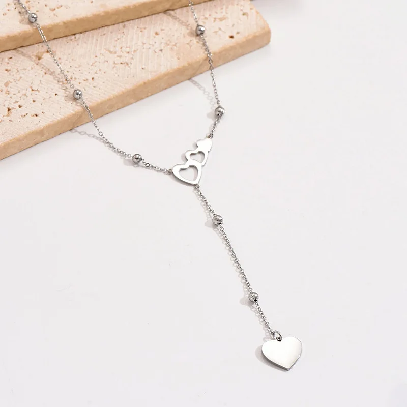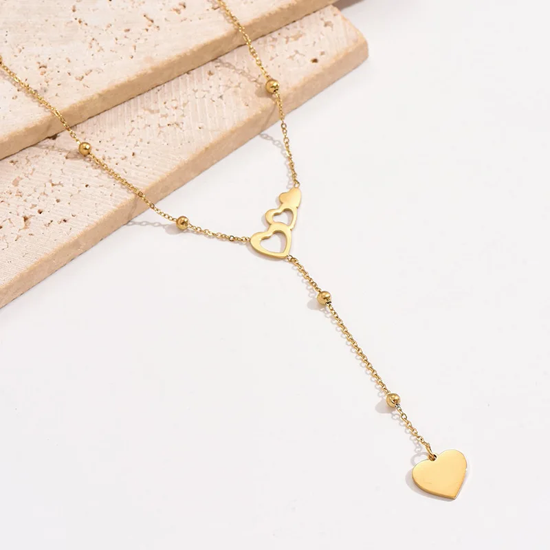 Europe United States New Fashion Double love Heart-shaped Stainless Steel Necklace Simple Niche Design Versatile Personality