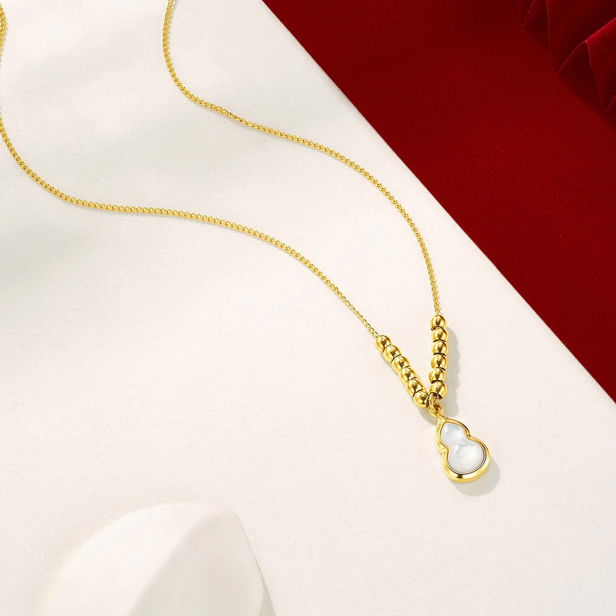 New Chinese Style Light Luxury Fritillaria Gourd Necklace Stainless Steel 24K Gold Plated Bamboo Collarbone Niche Design Women's
