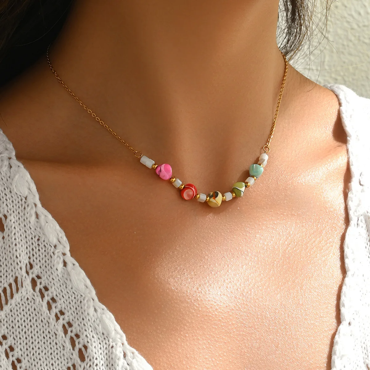 Fashion New High-end Sense Exquisite Bohemian Style Simple Temperament Versatile Electroplated Colored Necklace