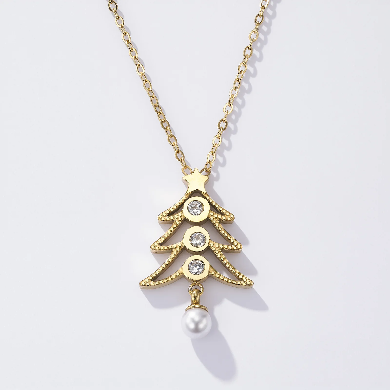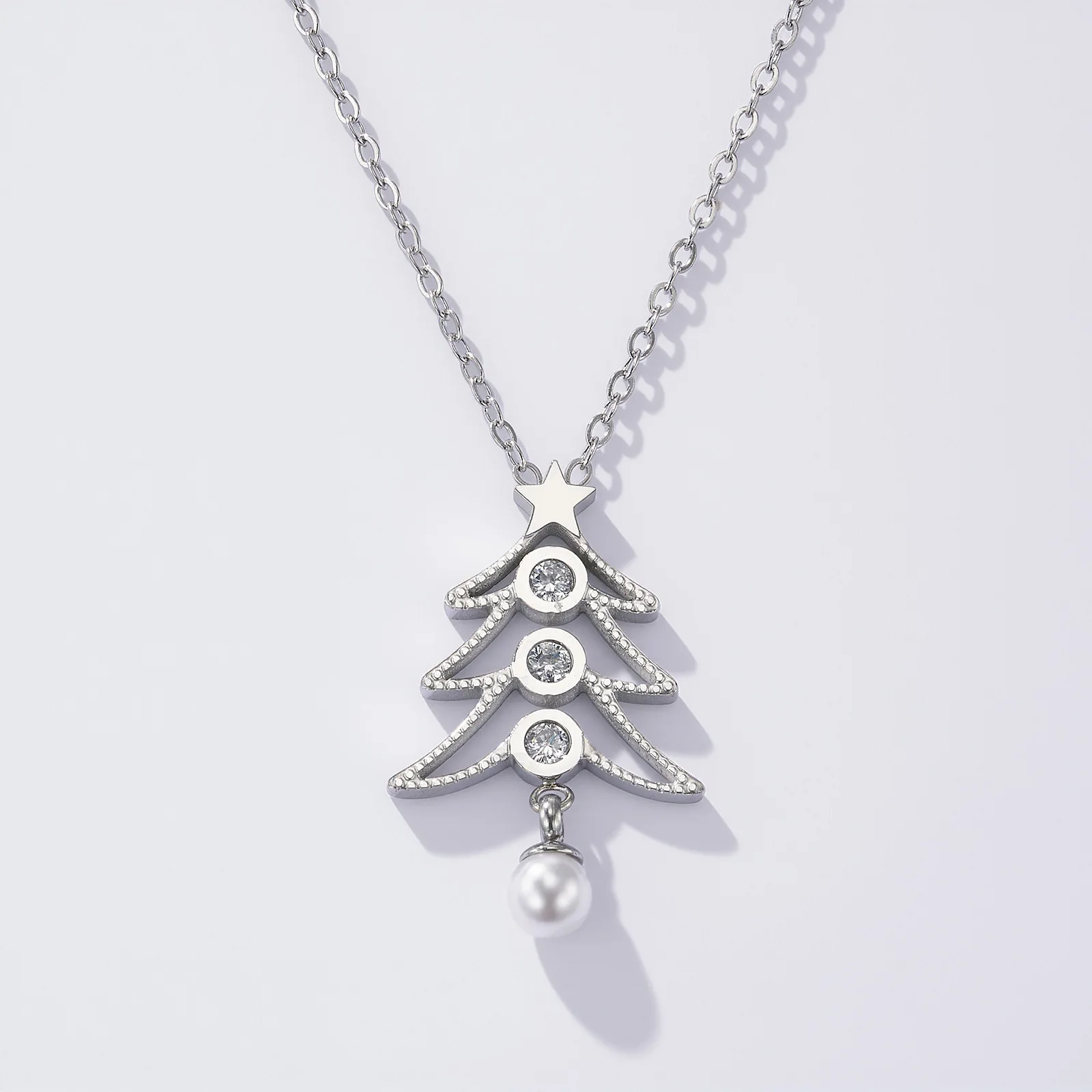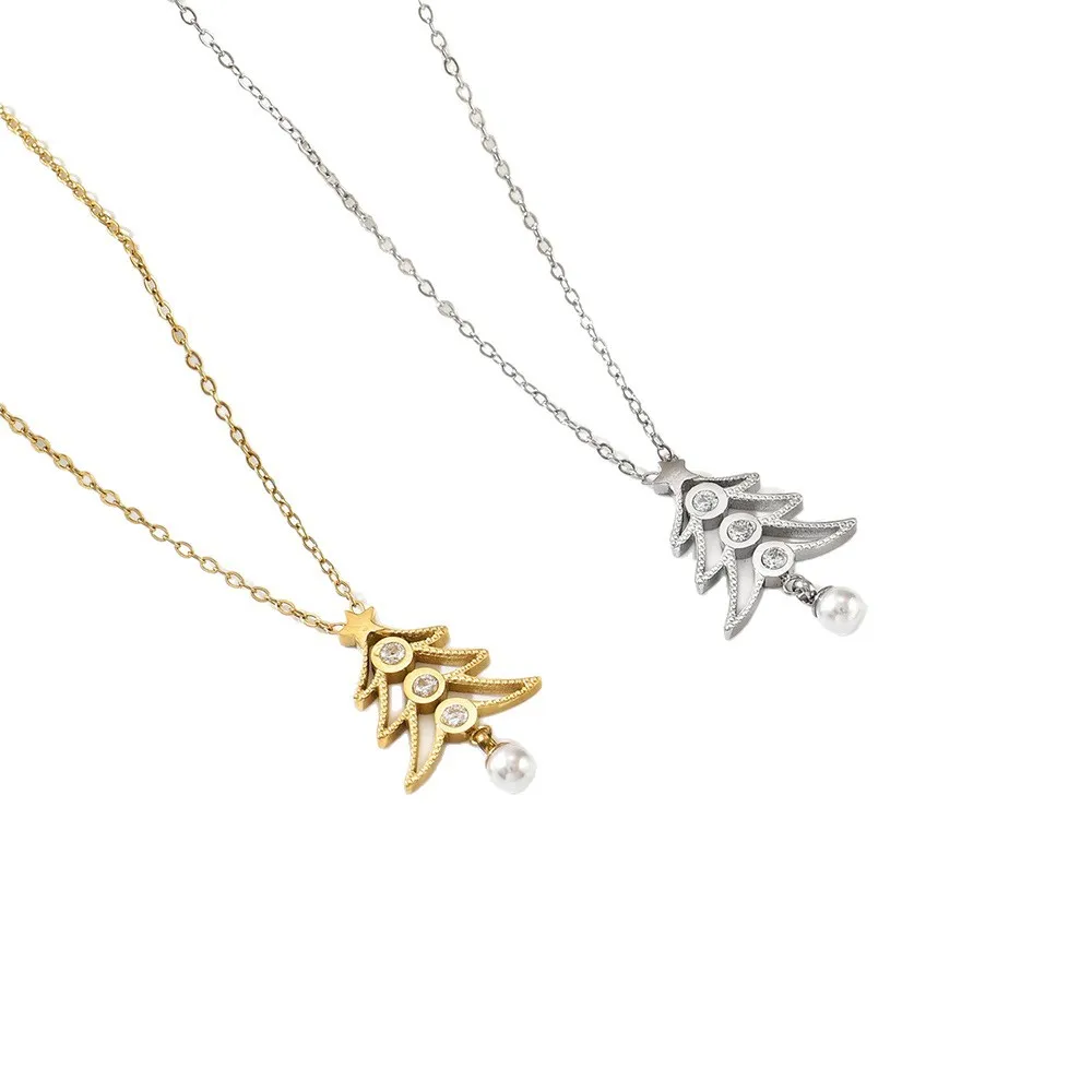 Christmas Theme Plant Shape Pearl Stainless Steel Women's Sporty Necklace Advanced Niche Design Europe America
