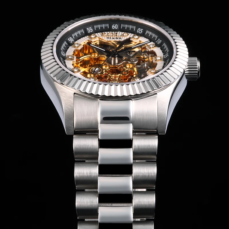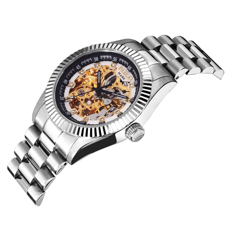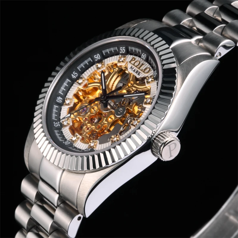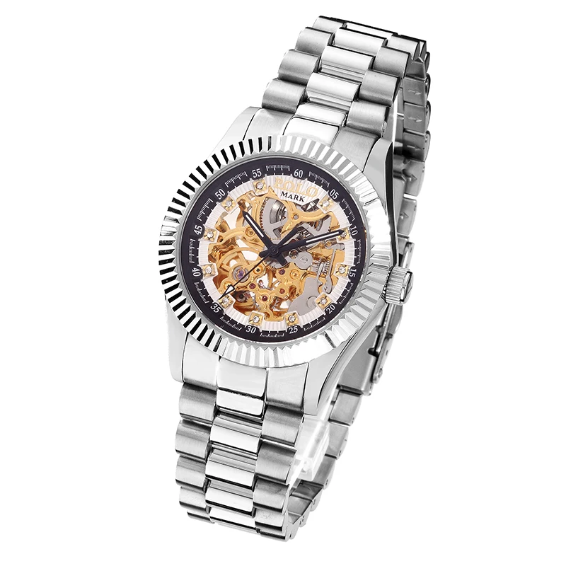 High Quality Luxury Stainless Steel Band Watch Classic for True Diamond Skeleton Mechanical Pointer Sapphire Crystal Water